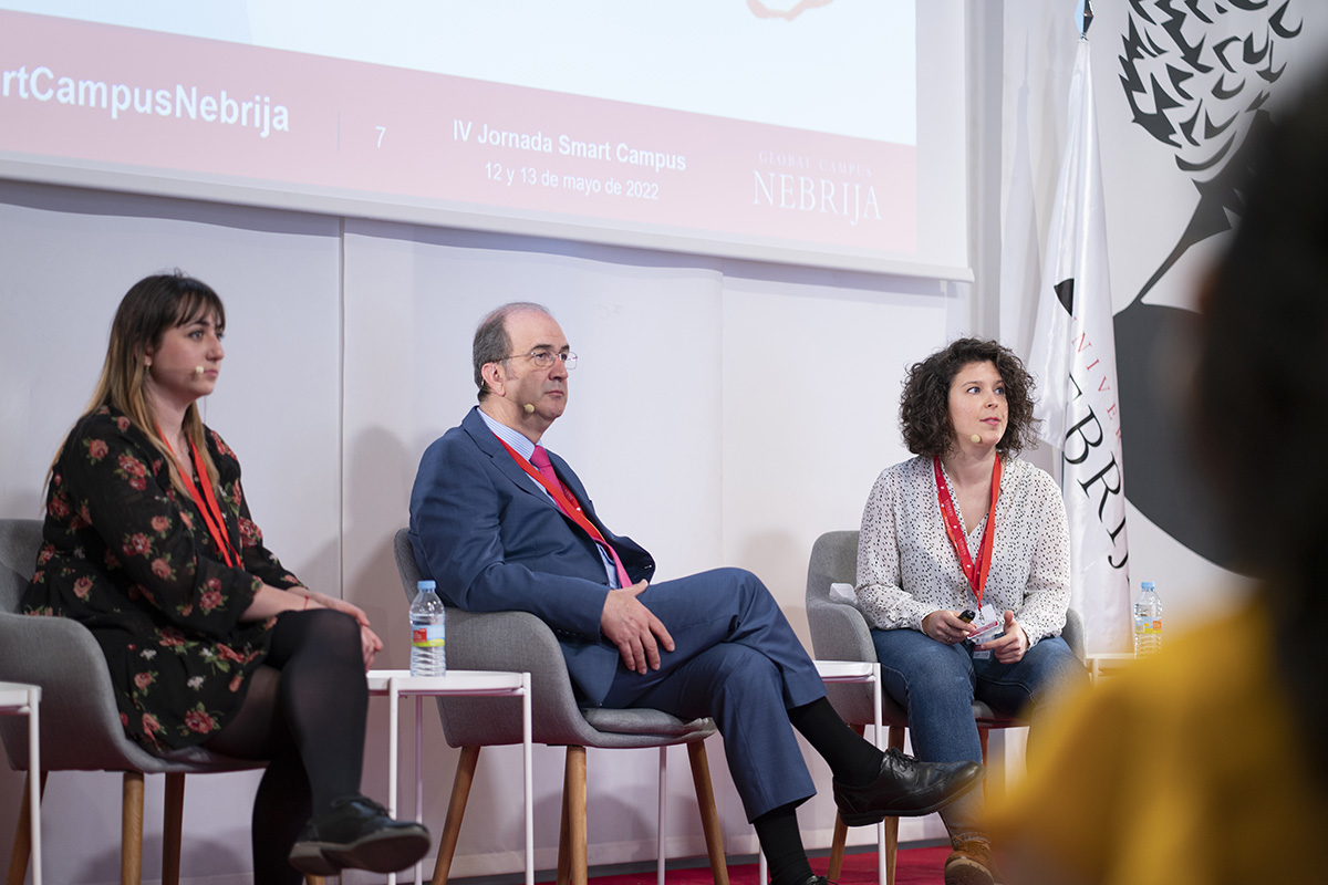 En la inauguración de Smart Campus, celebrado los días 12 y 13 de mayo, María García Sánchez., coordinadora de Innovación en e-learning de Global Campus Nebrija, elogió “el compromiso, la dedicación y el cariño” que vuelcan los profesores en sus clases. Fernando Corral, vicerrector de Profesorado y Talento de la Universidad Nebrija, animó a los docentes a “estar atentos, sacudirnos las inseguridades y seguir aprendiendo, con el uniforme de principiantes, técnicas en el entorno virtual”. La diversidad de actividades, el aprendizaje para toda la vida y el estímulo de Global Campus en las dinámicas universitarias fueron otros de los temas abordados por Corral, que instó a los participantes en las jornadas a aprovechar al máximo la experiencia.