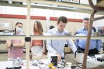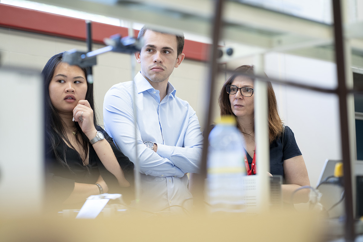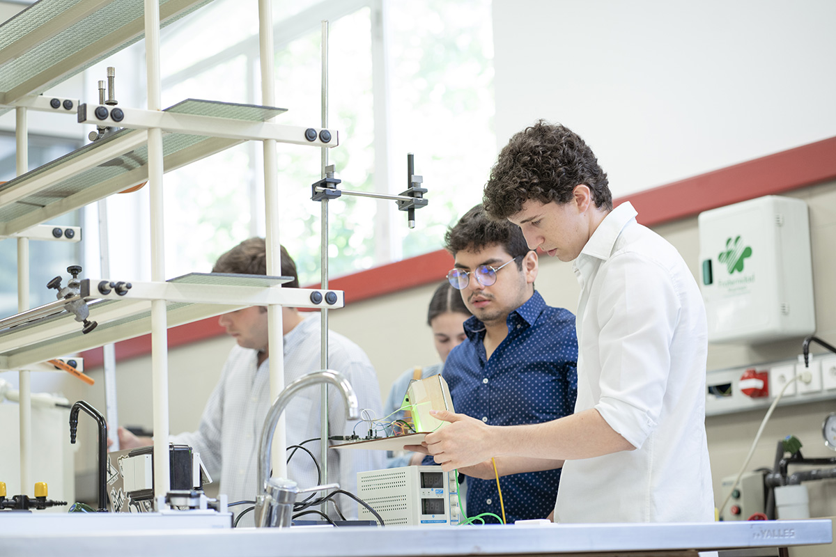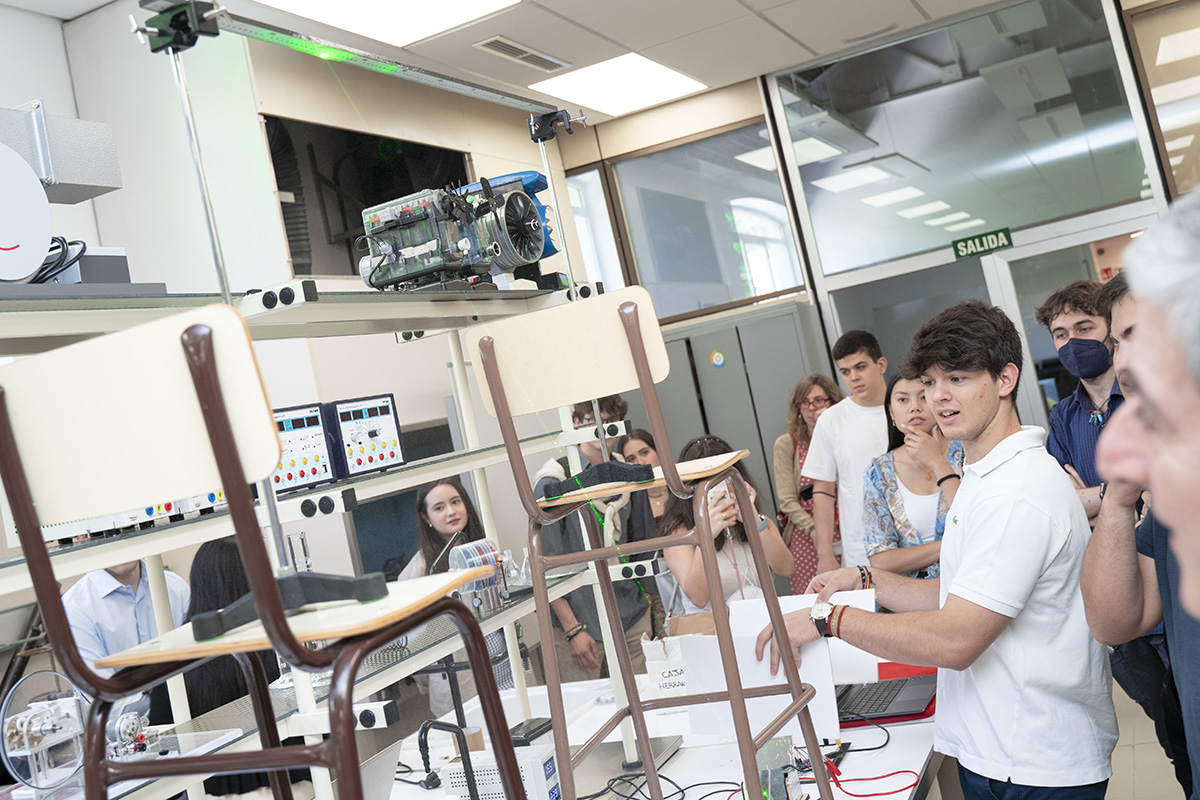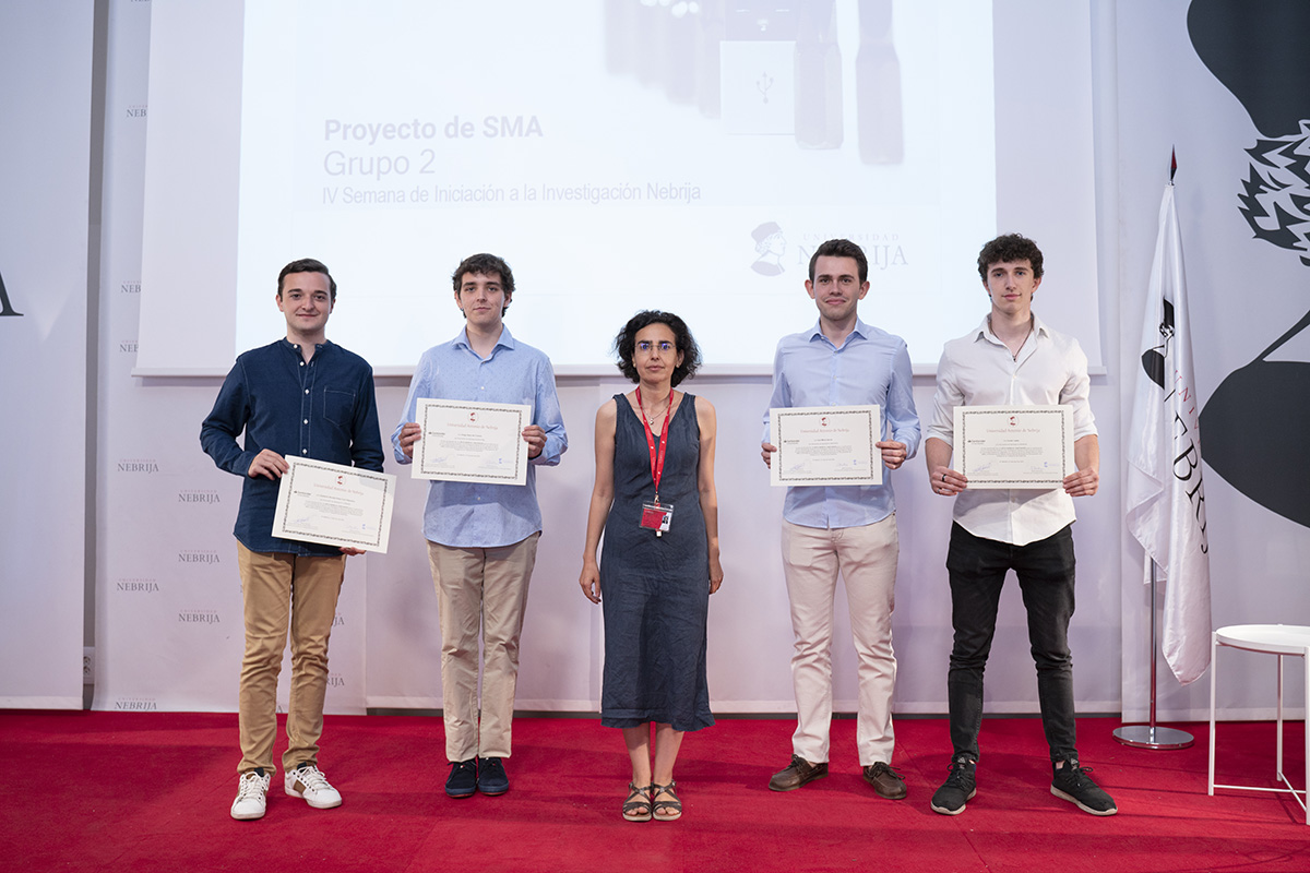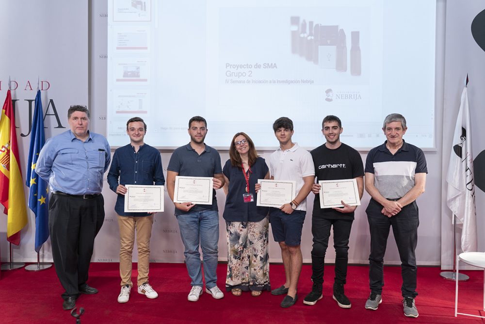 La IV Semana de Iniciación a la Investigación, organizada por la Cátedra Global Nebrija-Santander en Recuperación de Energía en el Transporte de Superficie, desembocó en la entrega de premios a los proyectos de los equipos multidisciplinares integrados por alumnos de distintos grados y cursos. En esta ocasión, los futuros ingenieros tuvieron que resolver un reto basado en los materiales con memoria de forma y, en el último día de la Semana, presentar su metodología y sus hipótesis a un jurado experto y a sus propios compañeros en el salón de actos y en los laboratorios.