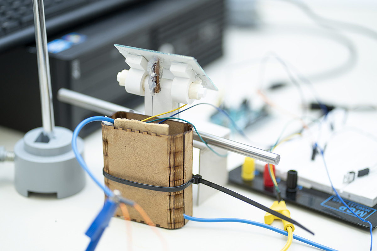 La práctica de esta edición, como explica, de una forma técnica, Carmen Iniesta, coordinadora de la Cátedra, consistió en el posicionamiento de un puntero láser sobre una superficie graduada, controlando el giro de un espejo sobre el cual rebota el haz de luz del láser. El control de giro del espejo se realiza a través del control de la deformación de un hilo SMA (Shape Memory Alloy) sometiendo dicho hilo a cambios de temperatura. El hilo se comprime ante aumentos de temperatura y tiende a recuperar su forma original ante descensos de temperatura. Cuando el hilo SMA se comprime, el espejo girará en un sentido, y cuando se descomprima, el espejo girará en el sentido contrario, asistido por un pequeño muelle. El calentamiento del hilo SMA se provoca mediante la activación de resistencias de potencia que disipan calor. El efecto térmico de memoria es una característica de las aleaciones (SMA) que, dependiendo de la temperatura, regresan a su forma original después de una deformación.
