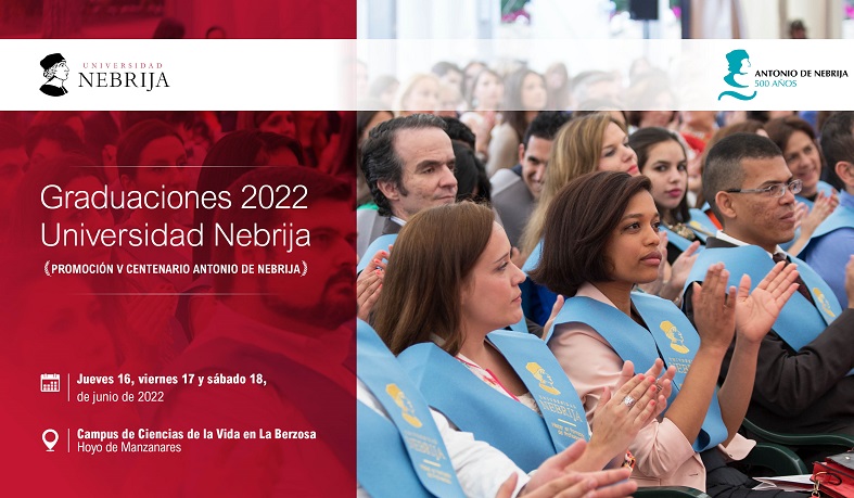 Los días 16, 17 y 18 de junio la Universidad Nebrija celebrará las Graduaciones de la Promoción 2022, V Centenario Antonio de Nebrija, en el Campus de la Vida y la Naturaleza de la Berzosa.