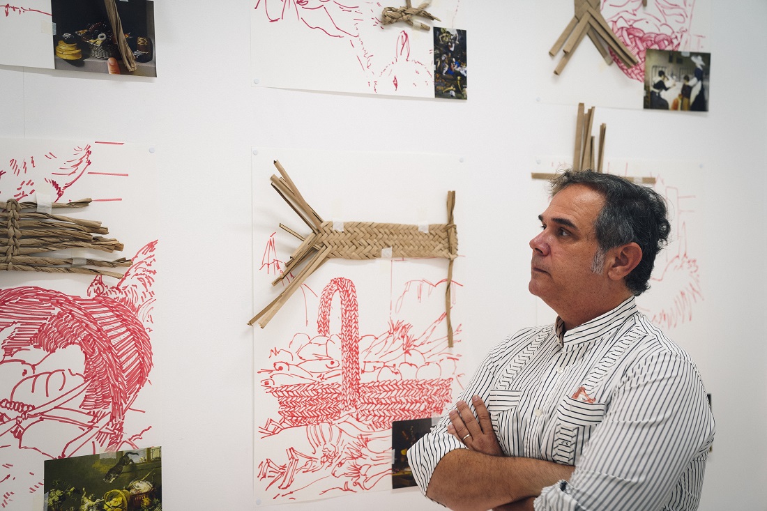 Materiales y evocaciones, de esa mezcla y del recuerdo del arte de la cestería, plasmado en numerosos cuadros del Museo del Prado, y del uso de técnicas vanguardistas como las instalaciones, el vídeo mapping –proyecciones de imágenes sobre superficies reales-, los guiones expandidos y los efectos lumínicos y sonoros surge esta original historia. “Esta pieza intenta estar en sintonía con el extraordinario acervo cultural de la península ibérica desde el Neolítico al Barroco”, declara Gárciga en la inauguración de la muestra.