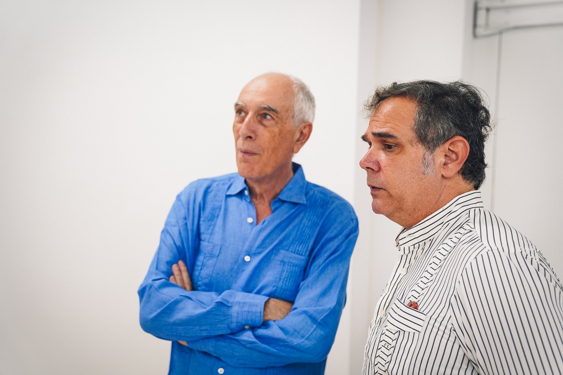 Manuel Villa-Cellino, presidente de la Fundación Antonio de Nebrija y del Consejo Rector de la Universidad Nebrija, y Marta Perlado, decana de la Facultad de Comunicación y Artes, también se mezclan entre los invitados que asisten al primer día de una exposición que es fruto del trabajo de cuatro meses.