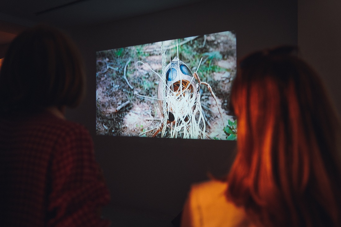 ¿Cómo podrán regresar a su tierra? Deben descubrir una contraseña que Luis Gárciga les ayuda a descifrar a través de un juego de escape que sigue el guion de una fábula. A través de sus disquisiciones y con las pistas del entorno vegetal consiguen dar con la clave: Pleita_y_cofin_#24. Luego desaparecen dejando unos enormes pufs de polipiel sintética o más bien unas semillas o granos de polen que se pueden ver en la exposición.