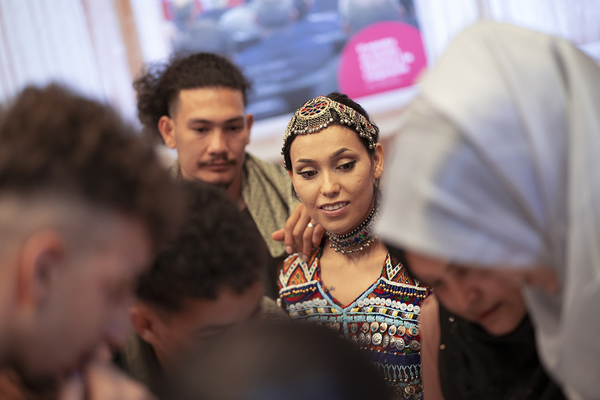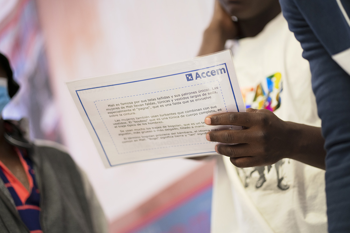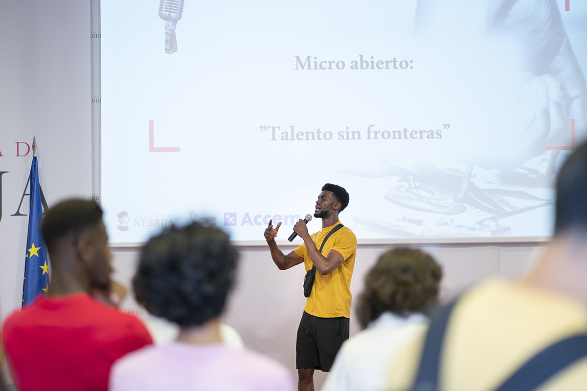 En el último tramo de las jornadas, Accem propuso “un micro abierto de talentos si fronteras” donde los raperos Jawad Saberi y Fernand Diallo sacudieron conciencias. También, Mady Traore, Shafi Ramiz, Ansoumana Diaoune, Ibrahima Cisse y Moussa Diawara cantaron el tema Me gustas tú, de Manu Chao, gracias al cual han aprendido vocabulario para desenvolverse en su día a día. Para terminar el bloque, Fernanda Oyarvide recitó unos poemas de la mexicana Gloria Gervitz. No obstante, hubo además actuaciones improvisadas que transformaron el salón de actos en una pista de baile y concordia.
