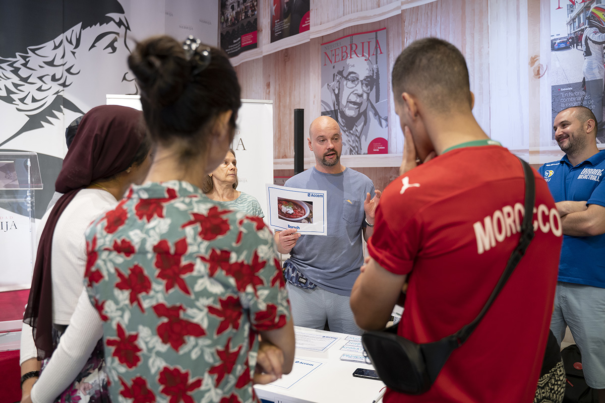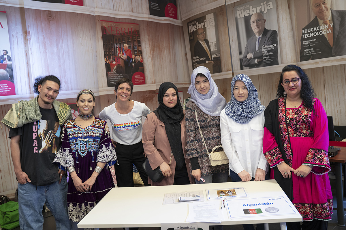 Susana Martín Leralta, decana de la Facultad de Lenguas y Educación, y Margarita Planelles, coordinadora de la Cátedra Global Nebrija-Santander del Español como Lengua de Migrantes y Refugiados, dieron la bienvenida a los más de 70 asistentes. Acto seguido, los representantes de Accem y los responsables de la Universidad Nebrija, que pidieron “un aplauso de motivación” impulsaron Mi refugio, un juego de lenguas y culturas. Alrededor de seis mesas, que representaban a Senegal, Marruecos, Mali, Afganistán, Ucrania y Siria, los equipos fueron conociendo diversos aspectos culturales de cada país como su música, su danza, sus platos típicos o sus ceremonias festivas. Al mismo tiempo tuvieron que aprender algunas palabras en cada idioma. Al final, todos tenían que dar respuesta a unos cuestionarios. El equipo morado ganó, pero la actividad reunió al final a los participantes en un círculo de amistad.