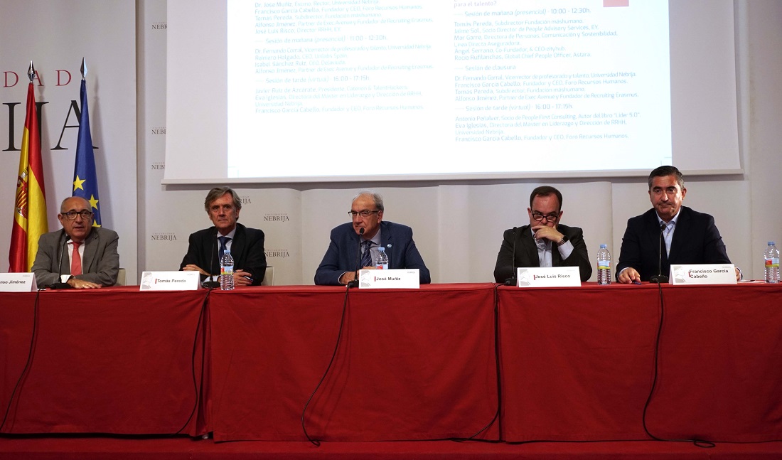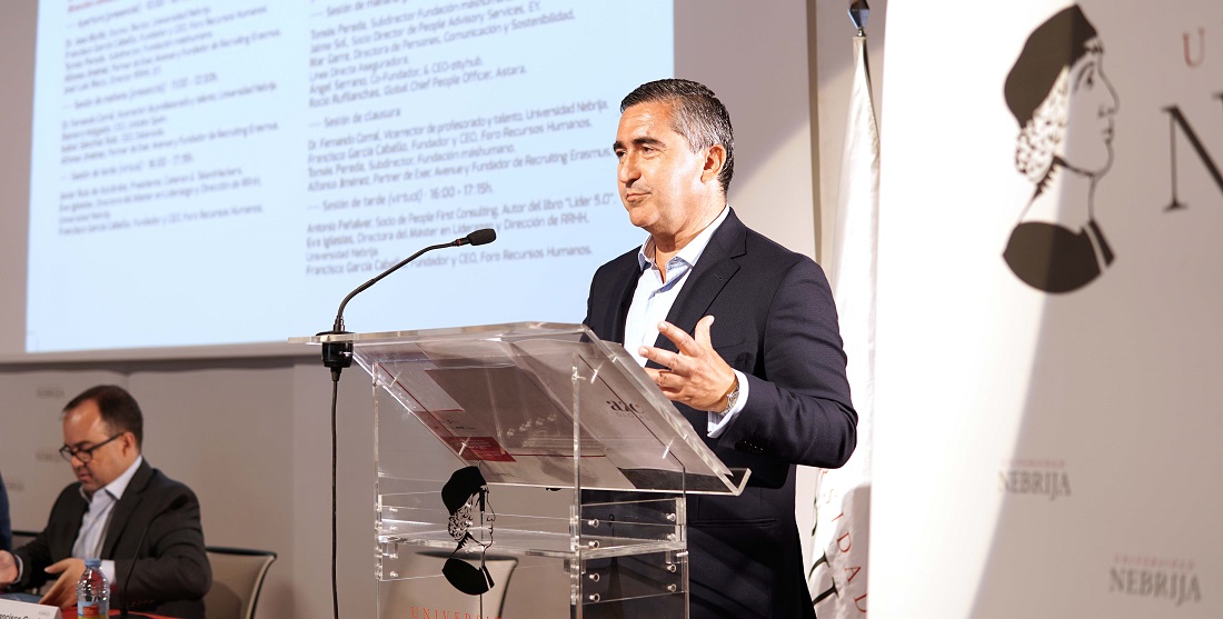 Alfonso Jiménez, partner en Exec Avenue y fundador de Recruiting Erasmus, cerró las primeras intervenciones de bienvenida. Como sus compañeros de mesa, intentó acotar el significado actual de los recursos humanos. “Los entiendo no como un cúmulo de verdades absolutas, sino, desde un cierto relativismo, como un intento de buscar la mejor gestión para cada circunstancia”. El autor de El arte de liderar, que presentó en el mismo salón de actos de la Universidad Nebrija en los días previos al confinamiento por la covid-19, evidenció que los cambios demográficos ya han llegado al mercado de trabajo. Los profesionales de los recursos humanos deben tener en cuenta el envejecimiento de la población, la “necesidad” de alargar la vida laboral o combatir el “edadismo -la discriminación por la edad- avanzado”. Además, hay otros aspectos que cobran relevancia en “el entorno cambiante en el que vivimos” como los valores sociales y las nuevas unidades familiares, la naturaleza geoestratégica -con una guerra en Europa- o el desarrollo tecnológico. Todos estos asuntos resultan, para Alfonso Jiménez, fundamentales para que “cada día abramos las puertas y las ventanas de nuestras empresas y sigamos siendo competitivos”.