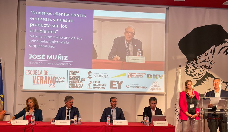 El Foro Recursos Humanos y la Universidad Nebrija conformaron la tercera edición de su Escuela de Verano en tres jornadas bajo el lema Hacia una nueva forma de pensar, sentir y liderar. Con el patrocinio de EY y la colaboración de empresas como Recruiting Erasmus, Fundación máshumano, OpenHR y DKV, entre otras entidades, las 200 personas inscritas en sus sesiones presenciales y virtuales escucharon a relevantes nombres en la gestión del talento.