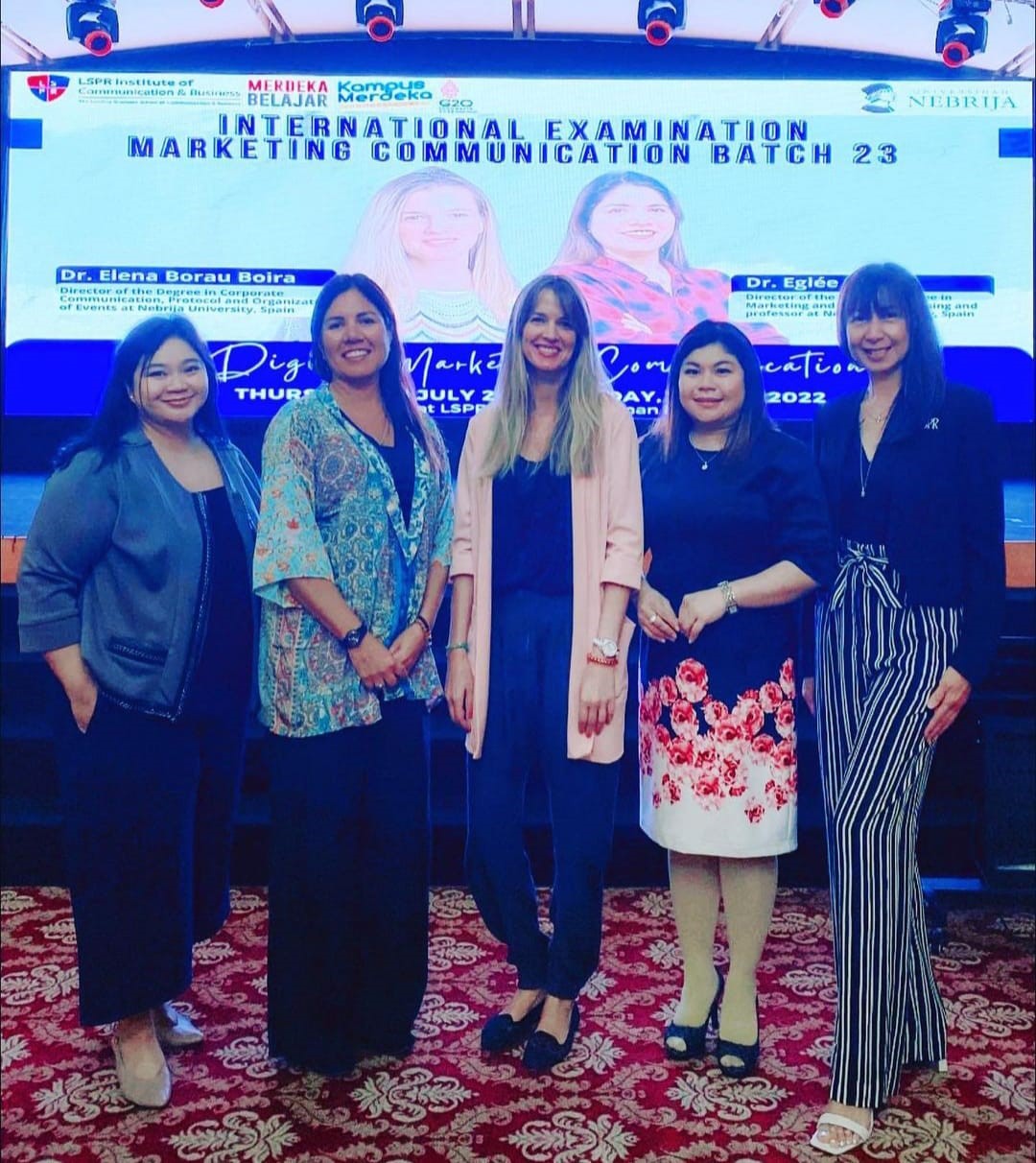En el marco de colaboración entre la Universidad Nebrija y LSPR Comunication & Business Institute, en Jakarta, las profesoras de la Facultad de Comunicación y Artes de Nebrija, Eglée Ortega y Elena Borau, han llevado a cabo actividades docentes y de evaluación, con el objetivo de compartir experiencias y mejorar conocimientos integrando ambas culturas desde el punto de vista del marketing y la comunicación digital.