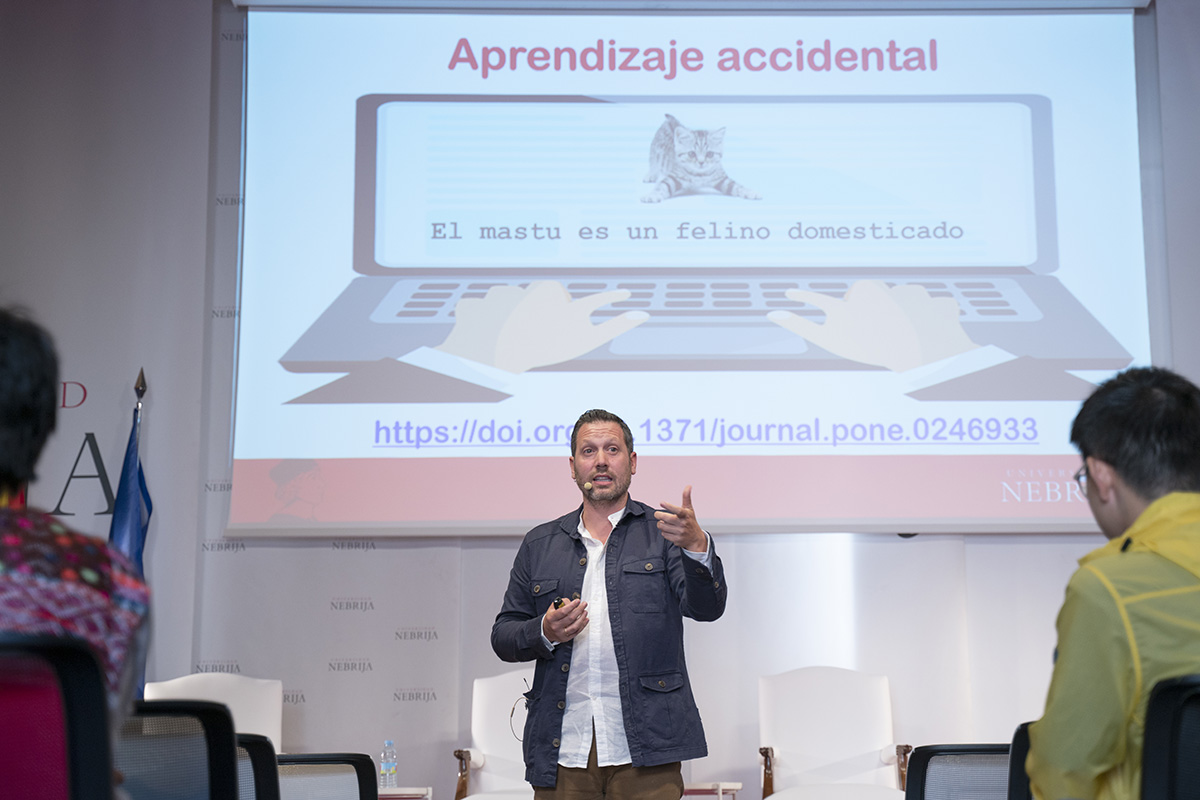 En la jornada, Jon Andoni Duñabeitia, director del Centro de Investigación Nebrija en Cognición, relacionó la lingüística aplicada a la enseñanza de ELE. Las relaciones interactivas con otras personas y con los procesos cognitivos son básicas en la investigación en el mundo ELE. Una perspectiva amplia y el uso de técnicas diversas componen el día a día de este tipo de investigación. “Una palabra que alguien aprende en español en lengua extranjera tiene un impacto sobre las palabras que conoce en su lengua nativa”, observó. Este nodo, en su opinión, puede entrar en conflicto en el “lexicón mental”, en ese conocimiento que un hablante tiene sobre el vocabulario de una lengua. La investigación intenta comprobar cómo afecta esto al aprendizaje.