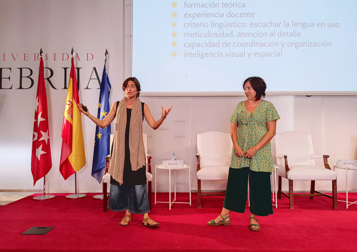 Susana Martín Leralta, decana de la Facultad de Lenguas y Educación de la Universidad Nebrija, en las palabras de bienvenida, subrayó el objetivo de un encuentro “que pretende dar respuesta, ideas y experiencias en un mundo ELE en efervescencia”. Acto seguido, Bega García Viúdez, directora del Máster en Lingüística Aplicada a la Enseñanza del Español como Lengua Extranjera, presentó la primera mesa redonda en la que intervinieron Álvaro García Santa-Cecilia, subdirector académico del Instituto Cervantes; Joana Lloret y Olimpia Zulima Muñoz (Unidad de Acción Educativa Exterior del Ministerio de Educación y Formación Profesional) y Sonsoles Vázquez Shelly, jefa de Servicio de Lectorados MAEC-AECID del Departamento de Cooperación Universitaria y Científica de la Agencia Española de Cooperación Internacional para el Desarrollo (AECID).
