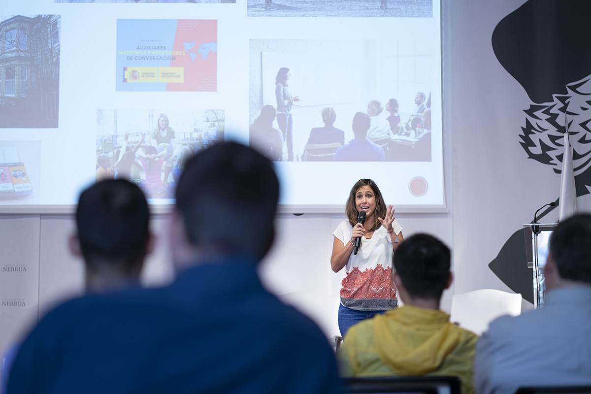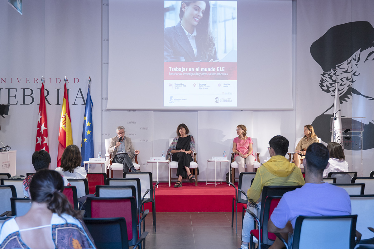 Los alumnos interesados en el español como lengua extranjera para ejercer como profesores afrontan su futuro laboral con las garantías que ofrece una lengua pujante; sin embargo, hay cierta desorientación a la hora de incorporarse al mercado de trabajo. Para que los estudiantes de los posgrados de formación de profesores de español como lengua extranjera (ELE) conozcan todas las posibilidades laborales, el Departamento de Lenguas Aplicadas de la Universidad Nebrija organizó el 23 de septiembre una jornada con expertos del sector público y privado, sin olvidar a los representantes académicos.