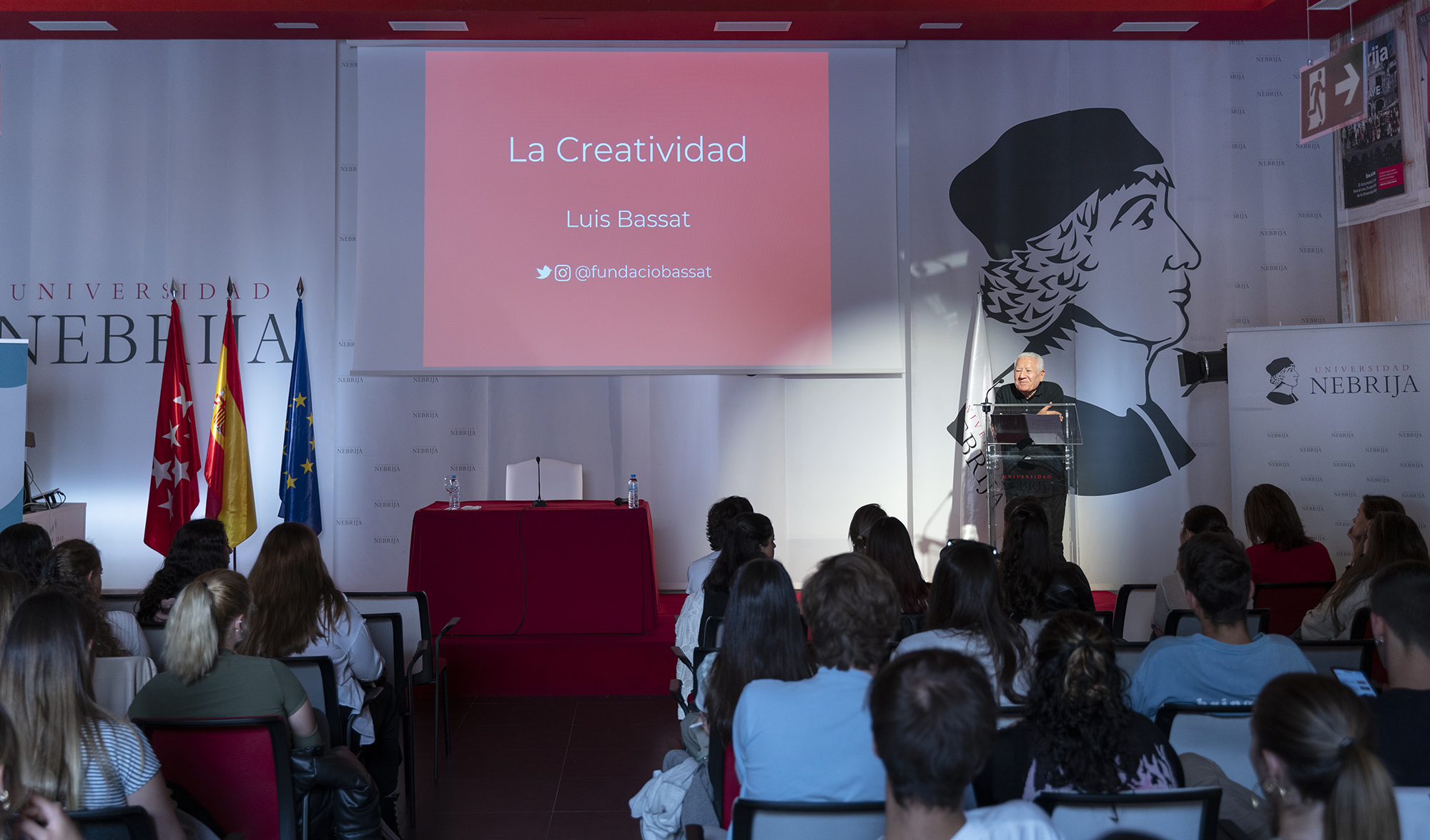 La creatividad está asociada al campo de la publicidad, pero su esencia impregna otras profesiones e incluso las maneras de estar del ser humano ante el mundo que lo rodea. Luis Bassat, más de 400 premios en festivales nacionales e internacionales de publicidad, considerado en 2000 el mejor publicitario del siglo XX, coleccionista de arte y de anécdotas que conforman una hoja de ruta laboral, se siente cómodo hablando de la creatividad, recreando pasajes de su libro de título homónimo ante los alumnos del Grado en Publicidad y Relaciones Públicas de la Universidad Nebrija.