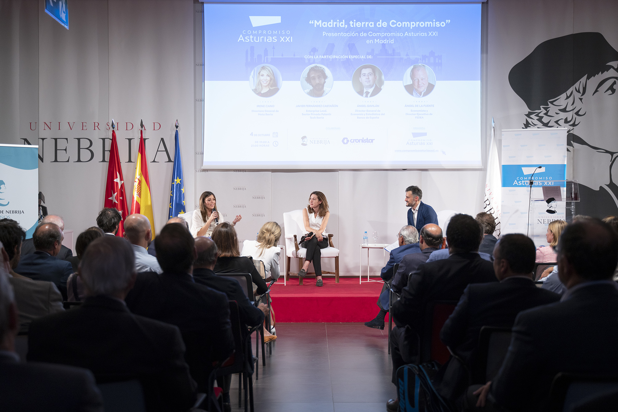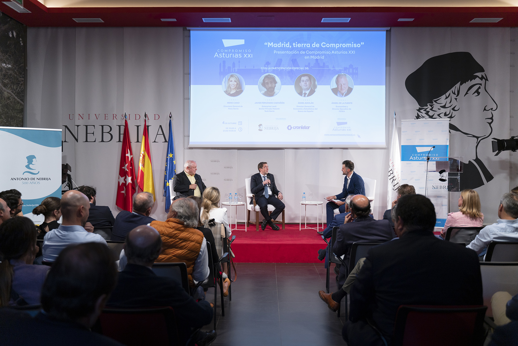 La asociación de utilidad pública Compromiso Asturias XXI ya cuenta con nueva delegación en Madrid para visibilizar las necesidades y posibilidades de la sociedad asturiana a través del conocimiento y la experiencia de sus socios. La puesta de largo, celebrada en el Campus de Madrid-Princesa de la Universidad Nebrija, y que contó con la colaboración de la Fundación Nebrija y Cronistar, confirmó la apuesta de los asturianos por impulsar sus empresas y allanar la entrada de los jóvenes al mercado laboral.