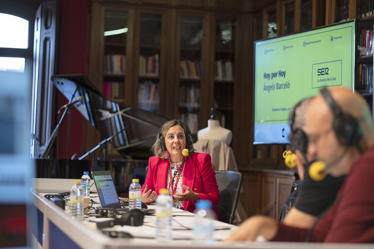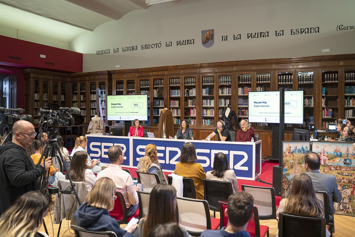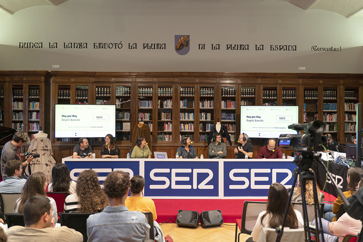 Los alumnos del Máster en Formación Permanente en Radio, Podcast y Audio Digital de la Universidad Nebrija han estrenado el curso con la retransmisión en directo de Hoy por hoy. El matinal de la Cadena SER que dirige y presenta Àngels Barceló se ha emitido desde la biblioteca de la Universidad Nebrija.