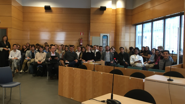Los alumnos del grado en Derecho, modalidad presencial, en el marco de las asignaturas de Derecho Penal II y Seminario de Competencias y Habilidades Jurídicas I, realizaron una visita al Juzgado de lo Penal núm 15 de Madrid acompañados por la profesora Maria Dolores López Faraldos.