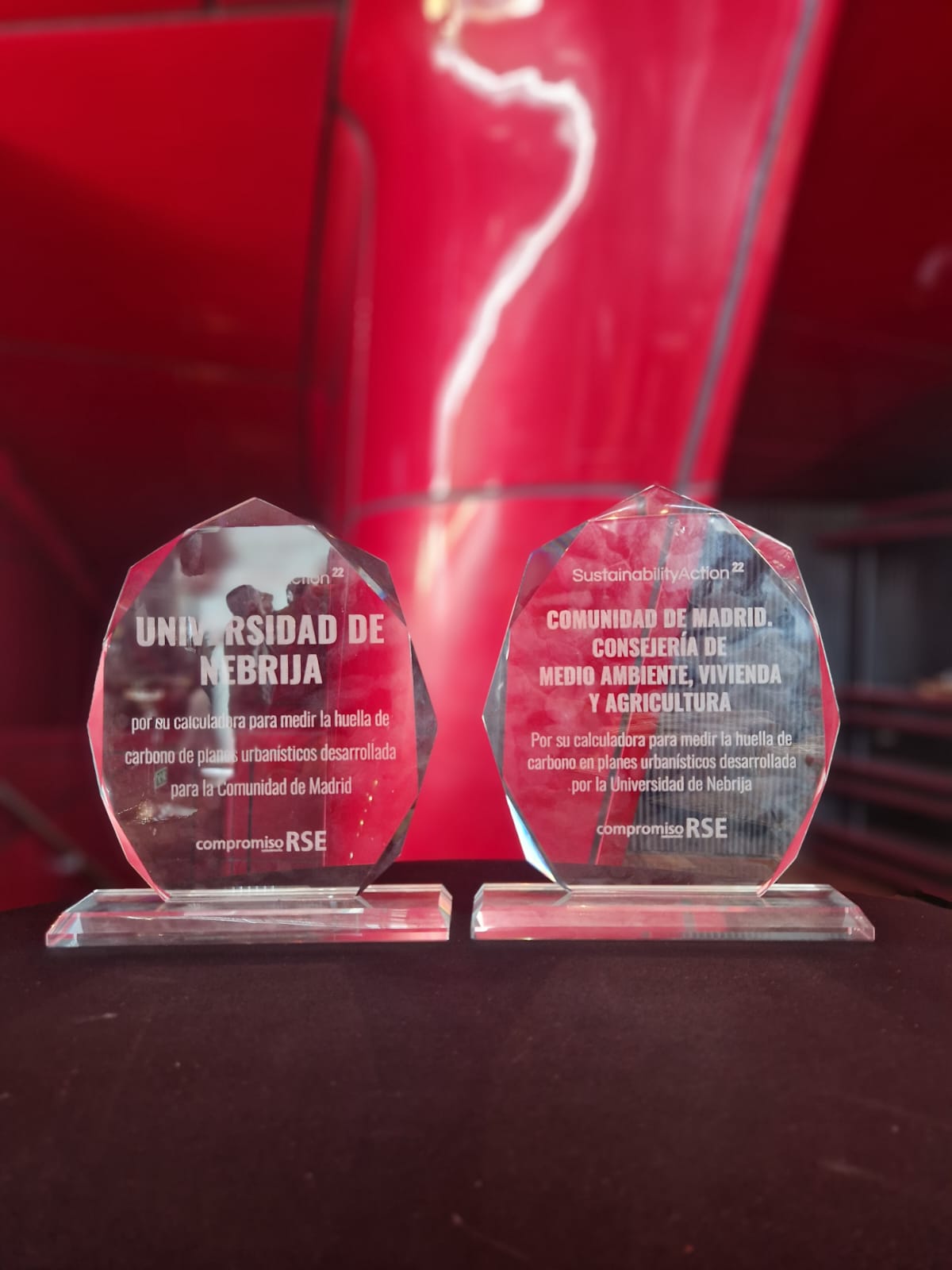 La calculadora para medir la huella de carbono en planes urbanísticos ha sido premiada en dos categorías: Administraciones y Educación. En un caso por la acción social que supone esta herramienta disponible para todos los ciudadanos, administraciones y empresas y, en el otro, por la investigación aplicada que ubica a la Universidad Nebrija como un centro referente en materia de sostenibilidad y con una clara vocación de servicio a la sociedad.