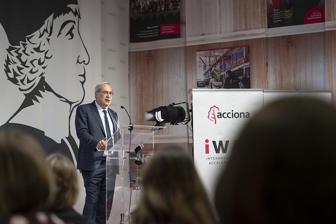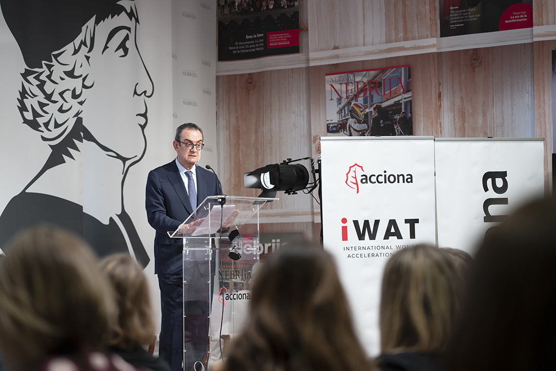 En la sesión inaugural, Gregorio Martínez, director de Relaciones Institucionales de la Universidad, definió la International Women Acceleration Track como un ejemplo de la manera de hacer de Nebrija, que conecta la razón educativa con las empresas a través del método learning by doing (aprender haciendo). De hecho, la Universidad mantiene cerca de 10 000 convenios con empresas e instituciones. Este “ambicioso” programa, a su juicio, también entronca con “la atención” que presta ACCIONA en la gestión de las personas y en el empoderamiento de sus trabajadoras.