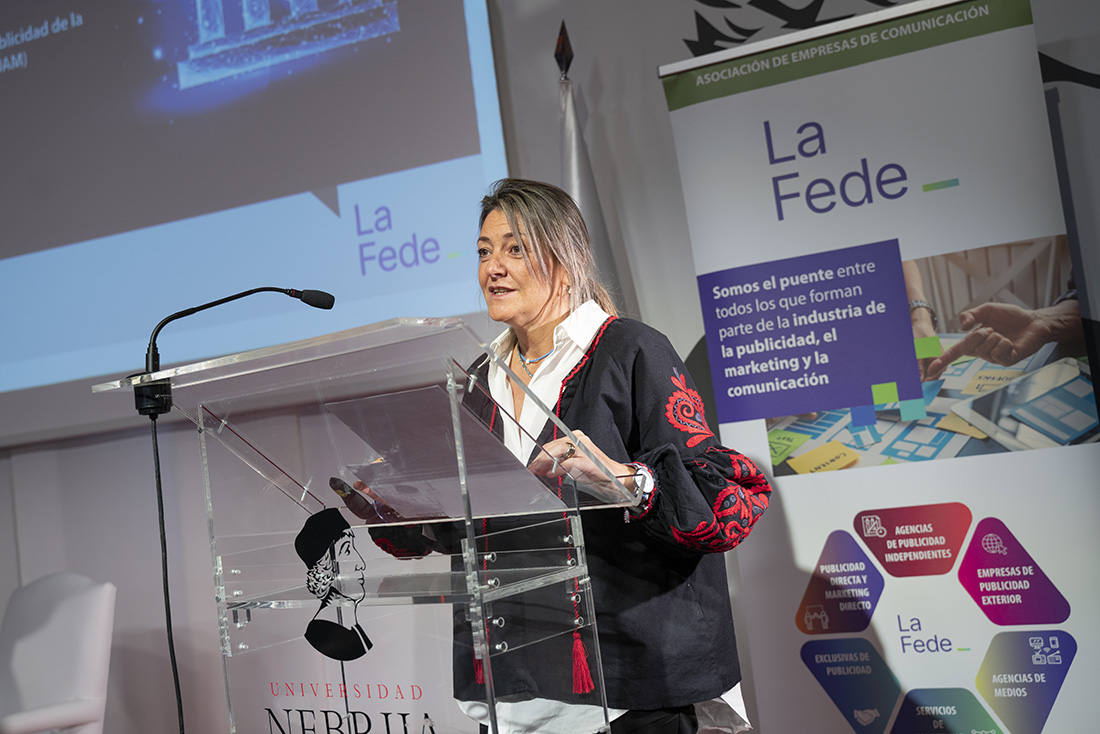 Sobre la simbiosis entre universidad y empresa disertó Diana Sánchez. “Esta colaboración con La FEDE forma parte del ADN de Nebrija porque nuestra metodología docente es muy profesionalizante”. Además, elogió la labor del estudio que “constata la enorme inversión publicitaria” que acometen las administraciones públicas.