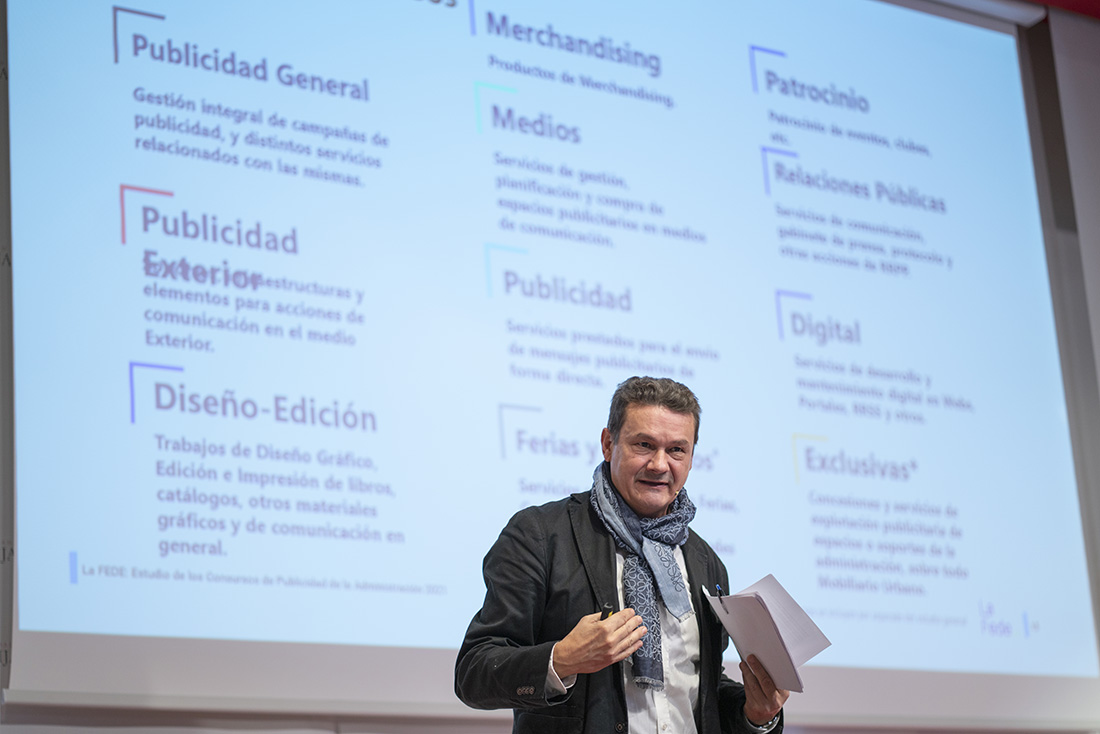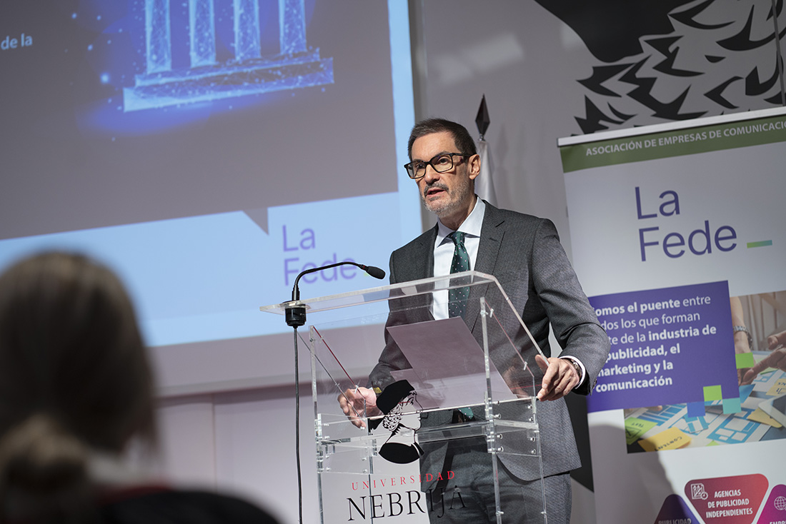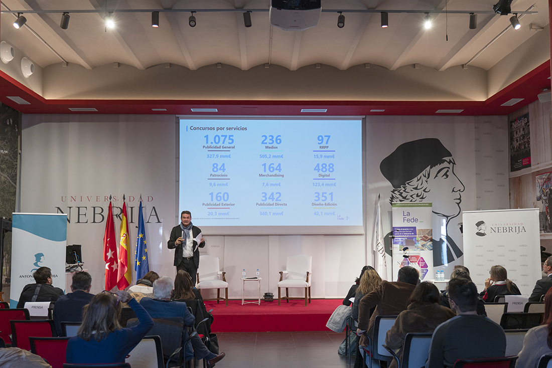 La Universidad Nebrija albergó la presentación del estudio Los Concursos de Publicidad de la Administración, elaborado por La FEDE, la Asociación de Empresas de la Comunicación, la organización que aúna a las empresas de servicios de publicidad, marketing y comunicación. En la más completa radiografía del mayor anunciante del país, la Administración Pública, Fernando Montañés, director del análisis y profesor de publicidad en la Universidad Nebrija y la Universidad Autónoma de Madrid, mostró todos los datos de un estudio que incorpora seis tipos de administraciones y once tipologías de concursos.
