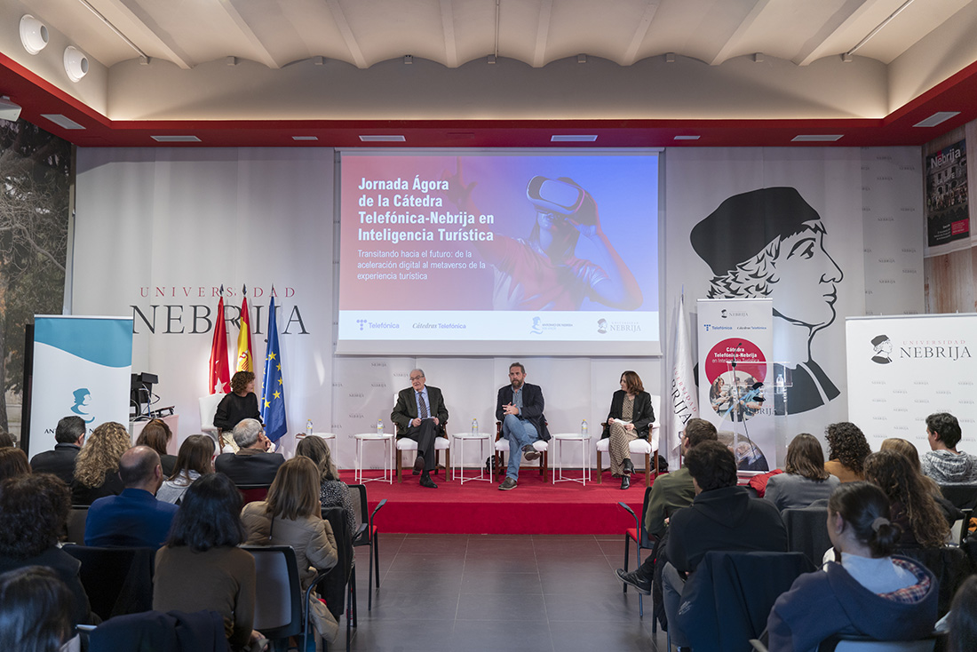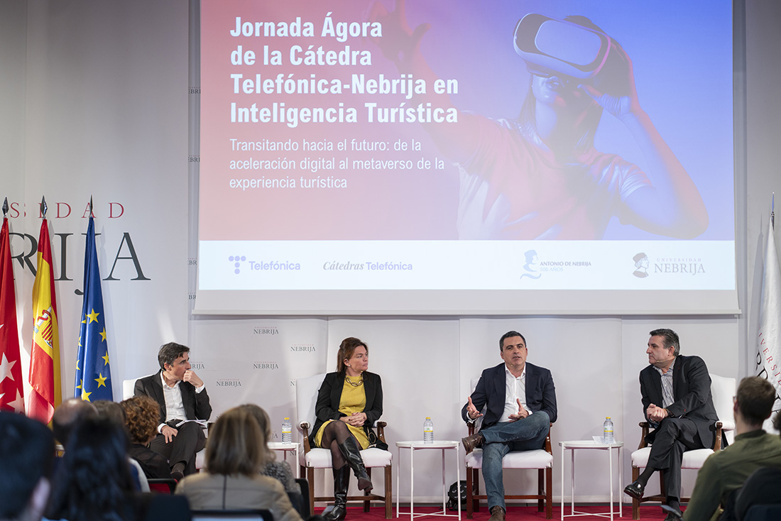 España, líder mundial en turismo, un sector que aporta el 12,3 % del PIB y supone el 13,7 % del empleo, no puede dormirse en los laureles. Después de la peor crisis de su historia provocada por la pandemia del coronavirus, los avances tecnológicos pueden convertirse en los grandes aliados para uno de los grandes motores económicos. Los debates y el intercambio de ideas entre todos los actores resultan vitales, por eso la Cátedra Telefónica-Nebrija en Inteligencia Turística, con el timón de su directora Aurkene Alzua-Sorzabal, organizó en la Universidad Nebrija un ágora que, al estilo clásico de preguntas y respuestas, unificó criterios bajo el lema Transitando hacia el futuro: de la aceleración digital al metaverso de la experiencia turística.