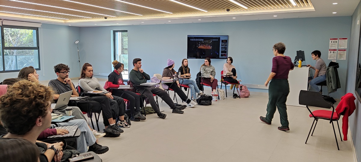 Los alumnos de 3º del Grado en Artes Escénicas han disfrutado, en la sesión habitual de la asignatura de Lecturas y Análisis de Textos Dramáticos, de la conferencia de la dramaturga y directora Lucía Miranda, que versó sobre el teatro documento y verbatim de sus obras al respecto y, más concretamente de la creación y puesta en escena de su texto de Fiesta, fiesta, fiesta.