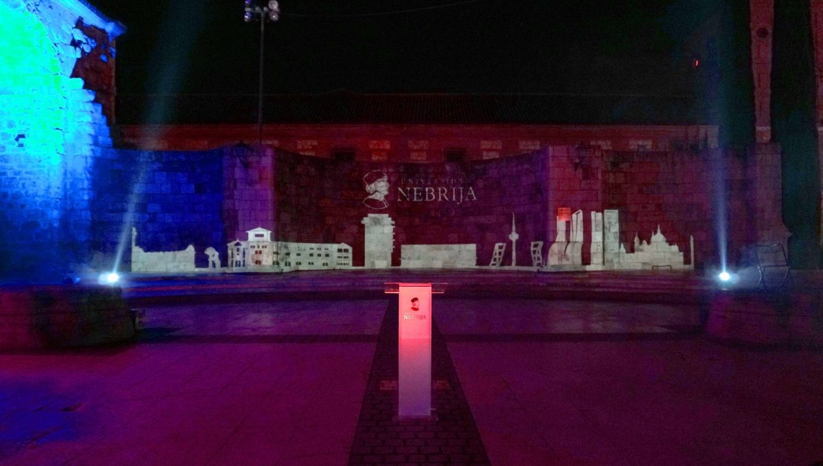 El alma de Antonio de Nebrija pululó por las ruinas de la Capilla del Oidor de Alcalá de Henares en forma de videomapping. Lo hizo el viernes 2 de diciembre gracias al proyecto Nebrija inmersivo: el poder de la palabra, ideado por alumnos del grado Diseño Digital y Multimedia de la Universidad Nebrija con la colaboración de alumnos de Bellas Artes y Comunicación Audiovisual. La esencia iluminada y quijotesca del padre de la gramática española sobrevoló por los vestigios de la iglesia de Santa María, aquella en la que un 9 de octubre de 1547 fue bautizado Miguel de Cervantes. El estreno de Nebrija inmersivo: el poder de la palabra se convirtió en un sobrecogedor homenaje a las dos figuras más ilustres de Alcalá. Nebrija y Cervantes. Cervantes y Nebrija. Tanto monta, monta tanto.