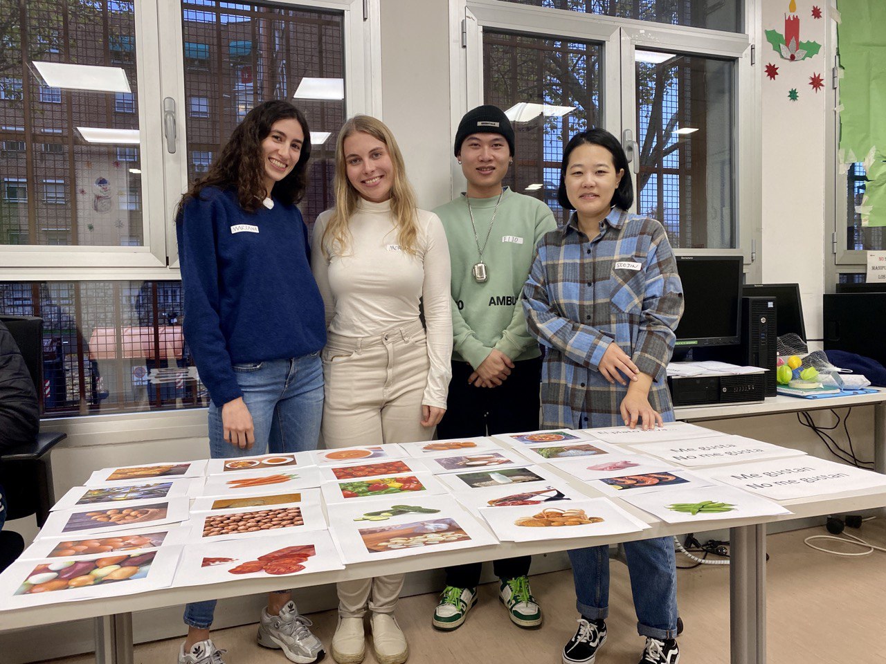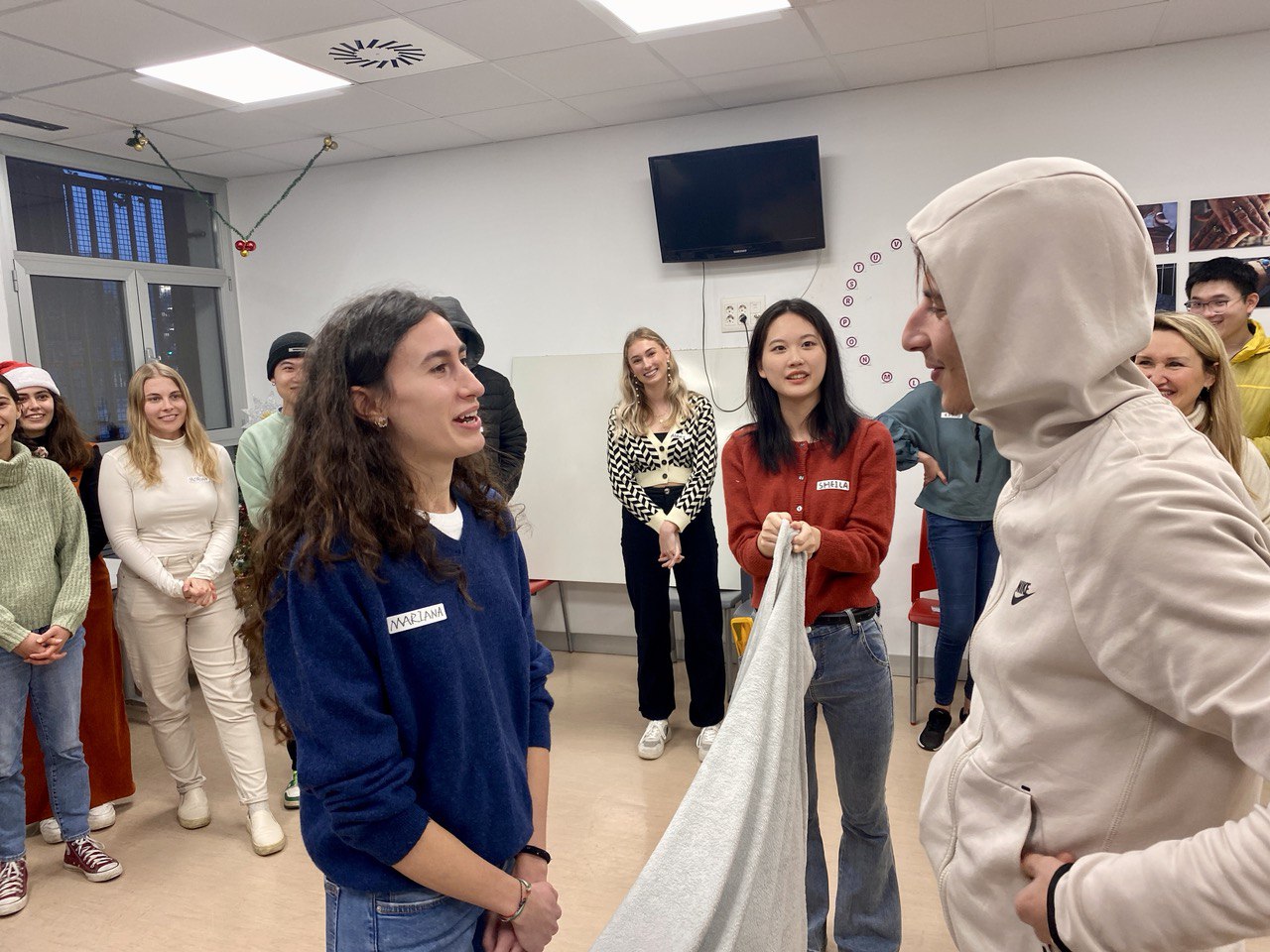 En la primera de las actividades una sábana separaba a cada grupo de dos participantes y cuando se bajaba tenían que presentarse, decir el país de dónde venían y alguna de sus aficiones. Su objetivo era que se conocieran mejor y que perdieran el miedo a expresarse en castellano. Posteriormente, todos ellos cambiaron de sala para descubrir cuatro dinámicas diseñadas por los futuros docentes en las que aprendieron algunos de los lugares más emblemáticos de Madrid, las fiestas tradicionales de nuestro país, la nomenclatura de cada establecimiento y los platos típicos de diversas regiones del mundo.