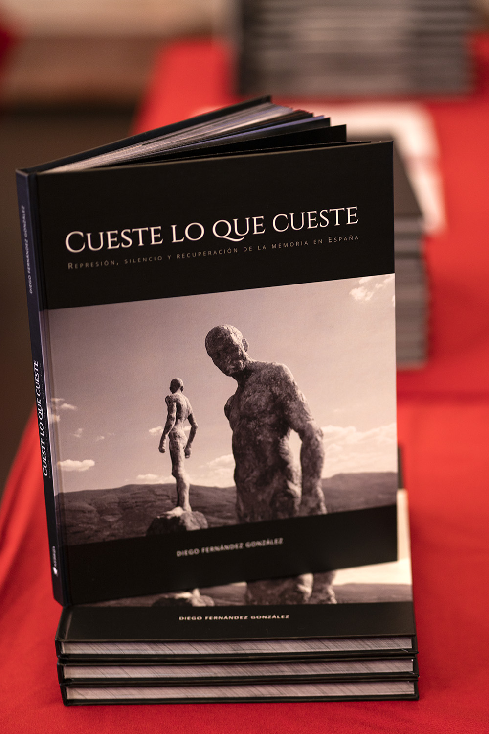Diego Fernández confesó que el trabajo germinó “en una clase de fotoperiodismo”. Siempre supo que quería hacer su TFG sobre la Memoria Histórica y eligió la fotografía porque es el campo en el que se siente “más cómodo”. Para él las asignaturas claves que le han ayudado a dar forma a su trabajo fueron las de Fotoperiodismo, Diseño editorial y Redacción. Consciente de que no es muy habitual que un TFG se base en imágenes más que en texto, Fernández, recién graduado puesto que esa mañana acababa de defender su trabajo, fue muy tajante. “Con mi trabajo en Cueste lo que cueste quería que fueran las fotos las que hablaran”.