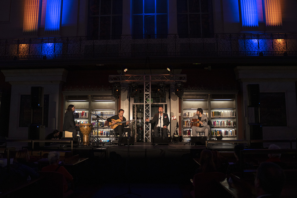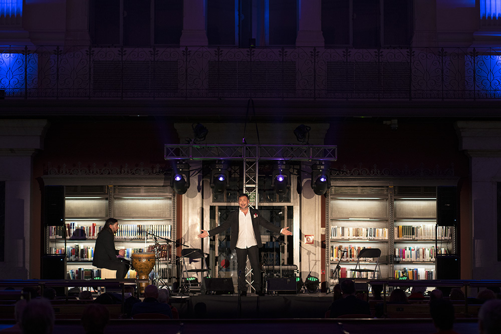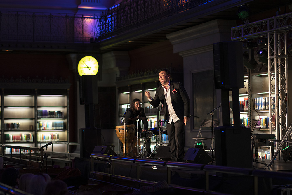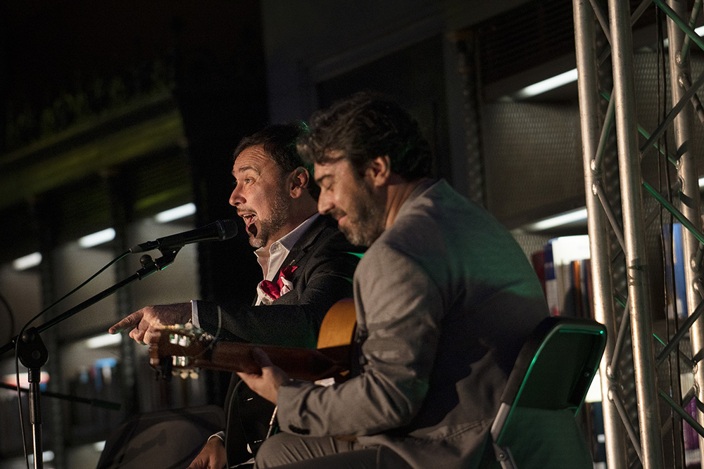 José Valencia, nacido en Barcelona en el seno de una familia gitana de Lebrija, se siente “muy orgulloso de estar en este templo” de la Biblioteca Nacional de España, e interrumpe sus cantos para dedicar un sentido homenaje a Antonio de Nebrija, “la persona que nos alumbró la vida y el camino”. Recoge la alegría de celebrar al sabio expresada por Ana Santos, directora de la BNE: “¡Qué gusto da ver a tanta gente en este concierto memorable!”. Al final, el público aplaude la osadía por divulgar a Nebrija desde el flamenco y con ribetes en latín. Seguramente el propio profesor Nebrija hubiera llevado a sus alumnos de la Universidad de Salamanca o a los de Alcalá de Henares a esta actividad extraordinaria y a la exposición Nebrija (c. 1444-1522), el orgullo de ser gramático que reposa, ávida de visitantes, al lado de la Sala de Lectura María Moliner.