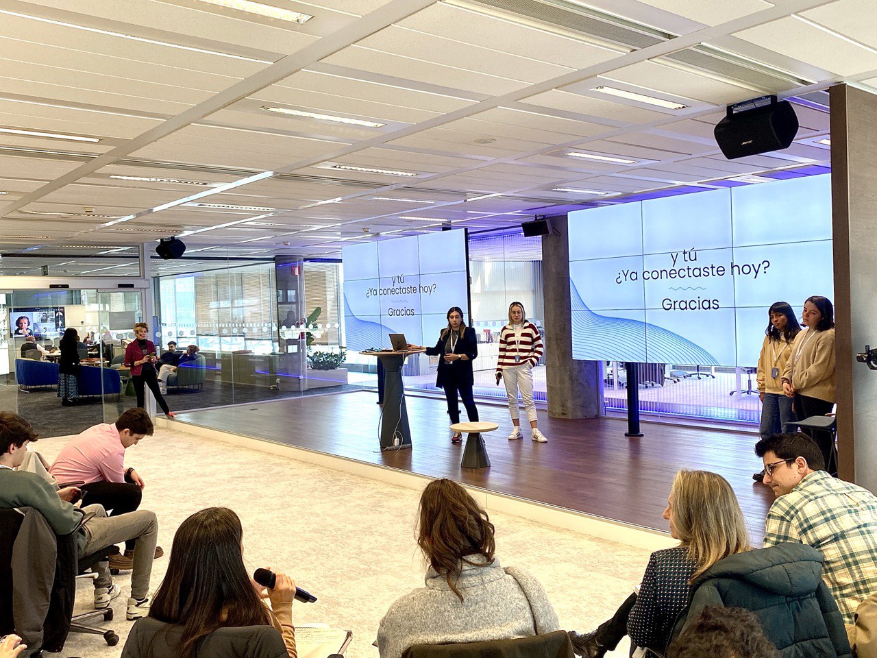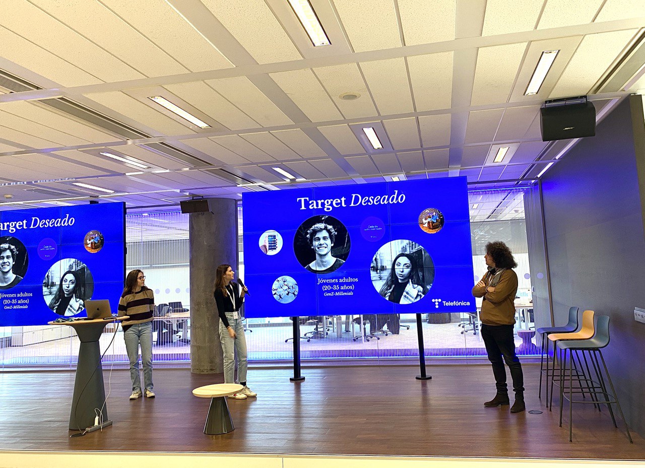 Tras una semana de intenso trabajo y más de 22 proyectos presentados, el grupo compuesto por Daniela Buitrago, Emma Guelbone, Diara Lucía Rojas y Ana Paula Zurita ha sido el vencedor del hackathon realizado por la Universidad Nebrija y Telefónica en las instalaciones del Hub de Innovación y Talento de la compañía. El objetivo en esta edición ha sido el de que los alumnos del Grado en Marketing de Nebrija trabajaran conjuntamente en un briefing destinado a que la plataforma “Mejor Conectados” llegue también a las generaciones más jóvenes. Cada grupo de los 71 estudiantes participantes debía presentar su propuesta en solo cinco minutos frente a un exigente jurado compuesto por los profesionales de la marca.
