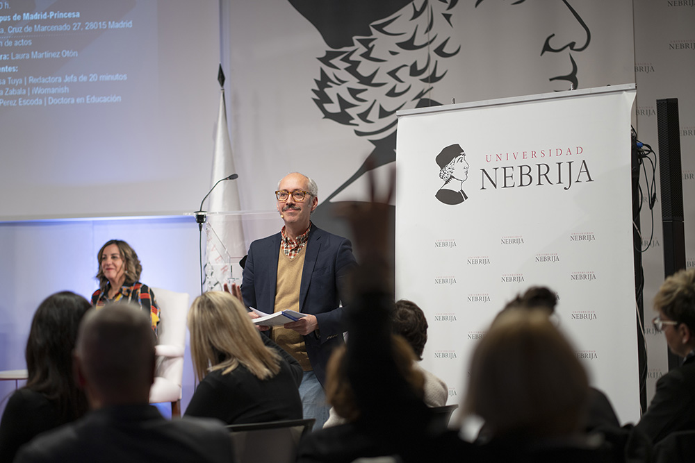 Laura Martínez Otón, directora académica del Máster en Formación Permanente en Radio Podcast y Audio Digital de la Universidad Nebrija presentó su libro Las fake news y las redes sociales en el escenario de la docencia en el Campus Madrid Princesa.