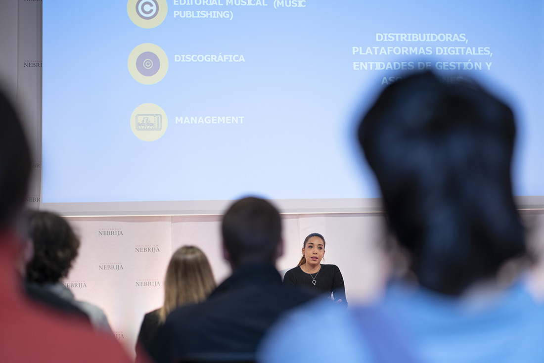 En la misma línea, aconsejó a los estudiantes de la Universidad Nebrija especializarse en una de las ramas sin perder de vista una visión global. Los perfiles profesionales beben de múltiples disciplinas como la comunicación audiovisual, el periodismo, el marketing, la publicidad, el derecho, las relaciones públicas, el sonido o la iluminación. Lo interesante radica en que a medida que el artista “va creciendo, su equipo lo hace en la misma proporción” ya que se van incorporando asistentes, mánager de producto, road manager o promotores.