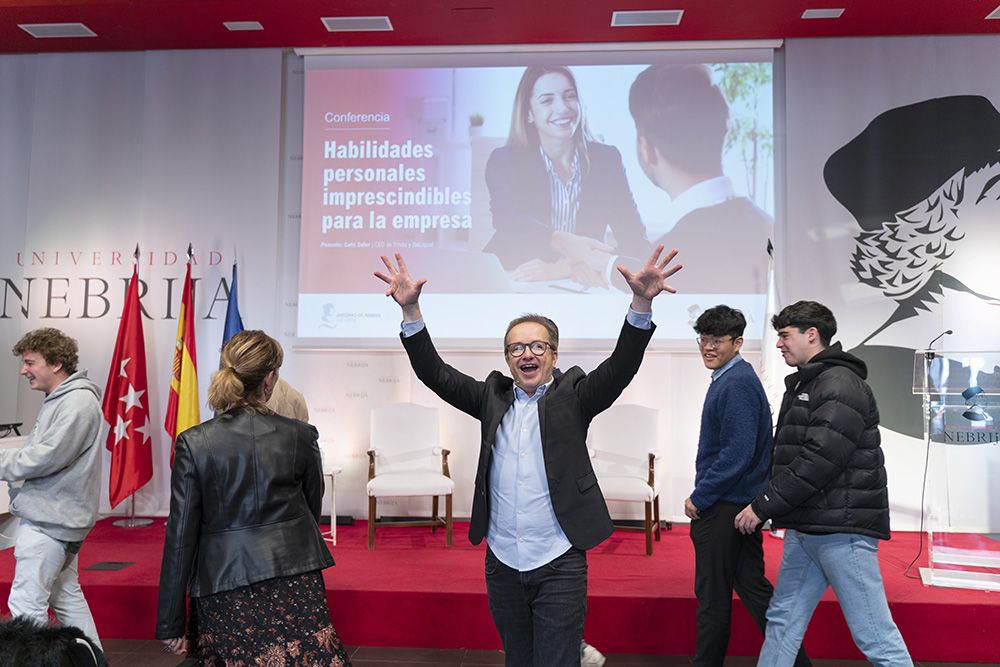 Este titular no pretende rendirle pleitesía al clickbait (ciberanzuelo) ni seducir sin un contenido de altura a los lectores de Actualidad Nebrija. Aquí viene el motivo. Coté Soler, actor, creativo, empresario, exinformático, empieza su conferencia -no fue exactamente una conferencia- con esta pregunta. Repito el titular: “¿Os engancha este tío dubitativo y pequeñito, sentado sin teneros en cuenta?”. Silencio entre los alumnos de la Universidad Nebrija. Muchos sueltan sus móviles y su capacidad para estar en otro lado -de cuerpo presente, pero de mente viajera- y escuchan atónitos esta cuestión, a la que antes había precedido la siguiente introducción al uso: “Soy Coté Soler y os voy a hablar de las habilidades que os van a hacer falta en vuestro trabajo y cómo os tenéis que relacionar con ellas…”.