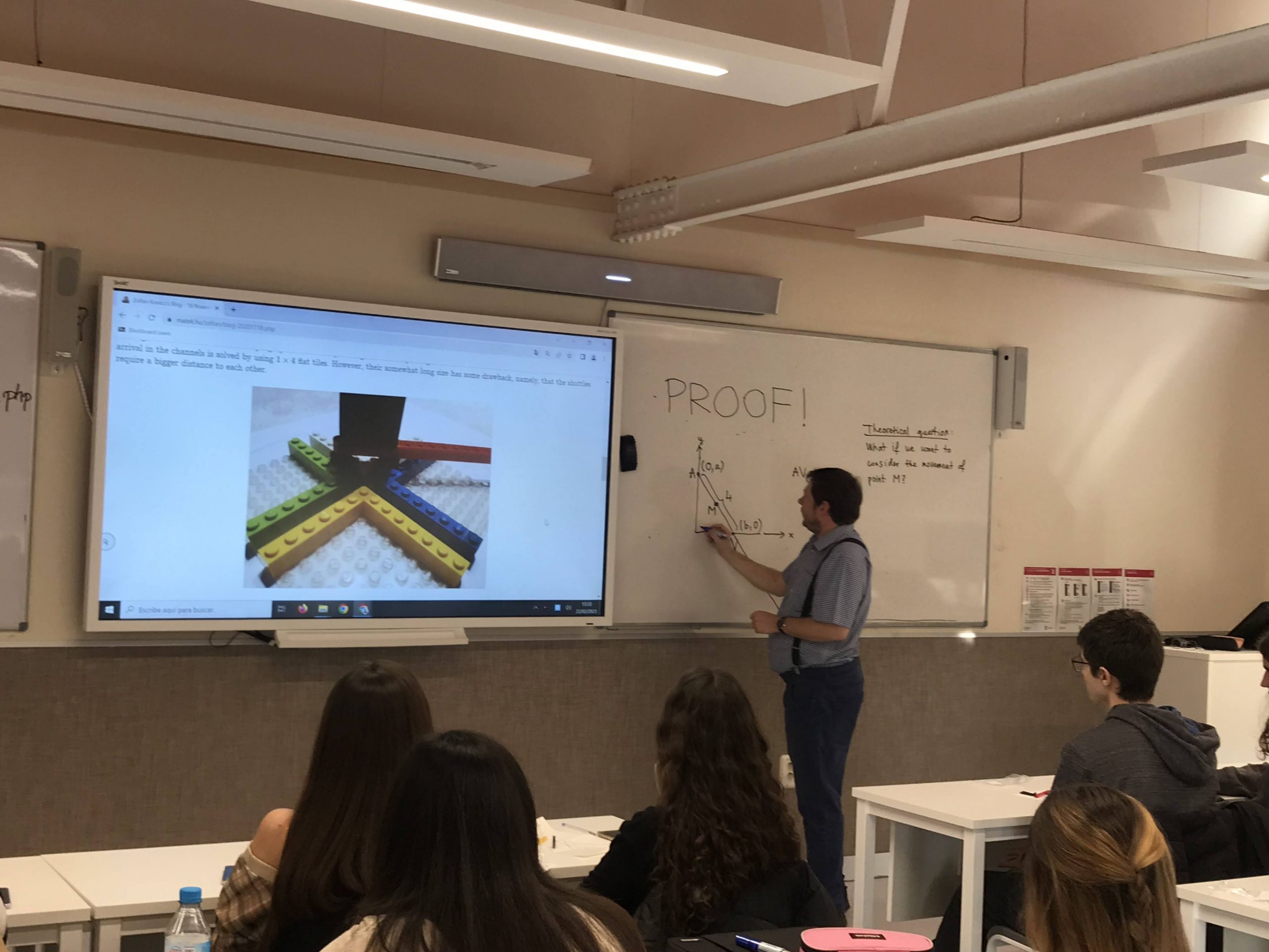 Adicionalmente, Zoltán Kovács impartió una masterclass a los estudiantes del grado en Matemáticas Aplicadas titulada Linkages geometry with GeoGebra and LEGO (en https://matek.hu/zoltan/madrid-2023.php puede verse el contenido). La sesión permitió a los alumnos experimentar con modelos en LEGO, calcular con GeoGebra y razonar matemáticamente sobre la geometría de las curvas obtenidas mediante algunos mecanismos articulados de barras como el de Watt, el de Chevyshed o el elipsógrafo de Arquímedes.