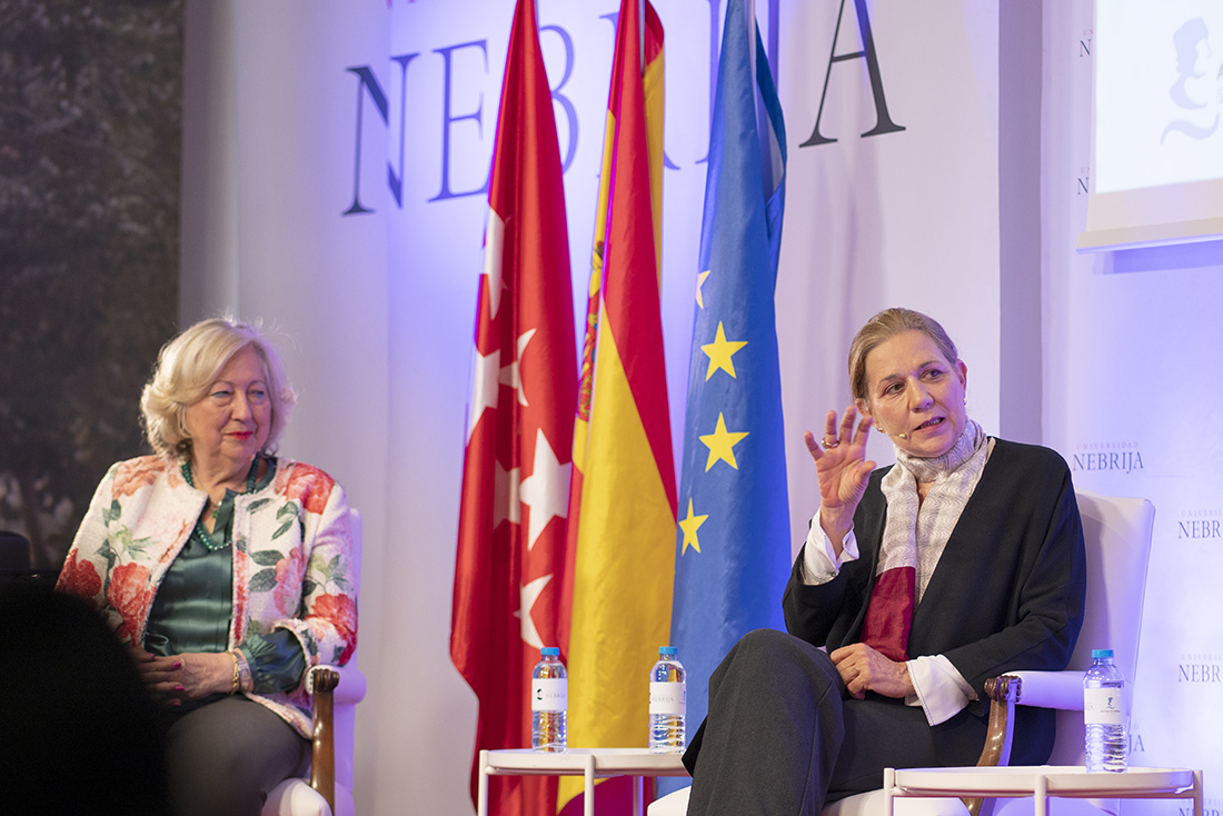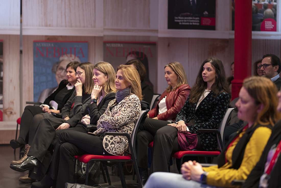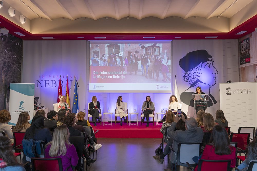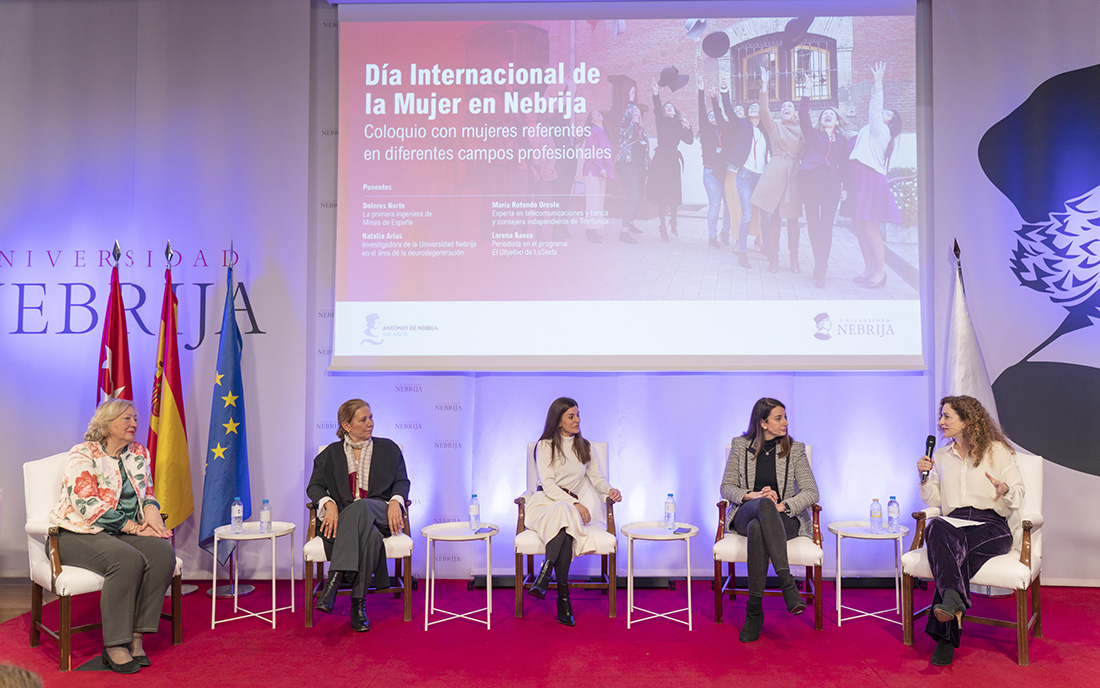 Las cuatro participaron en un coloquio moderado por María Gil, directora de Comunicación de la Universidad Nebrija, en el Campus de Madrid-Princesa, para celebrar el 8 de marzo, el Día Internacional de la Mujer. La Universidad dio voz a las reivindicaciones por la igualdad de salarios y oportunidades y por una mayor presencia en los puestos de dirección sin olvidar la defensa de la dignidad y de los derechos humanos. Las nuevas generaciones de estudiantes necesitan referentes femeninos, “un espejo en el que mirarse”, una inspiración que les permita crecer en su vida personal y profesional. Las estudiantes pudieron identificar a estas profesionales consagradas en una jornada que también contó con una entrega de premios a los mejores carteles relacionados con la niña y la ciencia y con el tradicional lanzamiento de sombreros en el patio, un gesto simbólico en honor a las Sinsombrero, un grupo de artistas y escritoras españolas de principios del siglo XX cuyas aportaciones han permanecido orilladas.