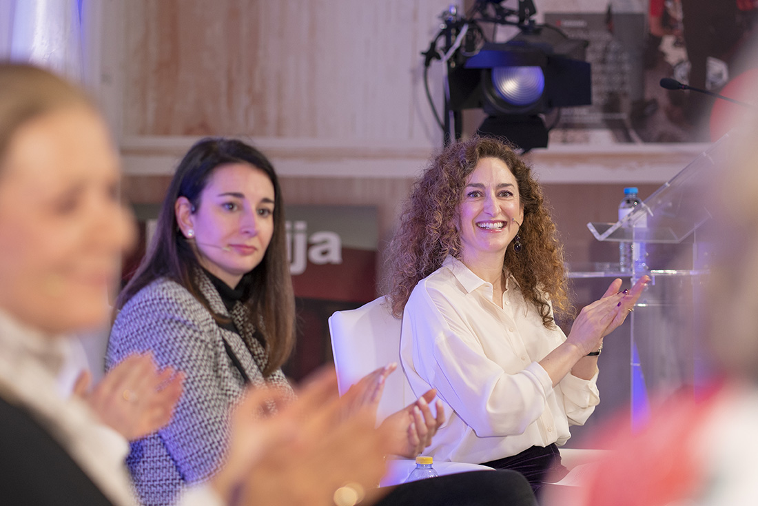 Sobre los obstáculos y dificultades que las mujeres encuentran en el terreno laboral, Lola Norte apostó por la formación y la mentoría para cambiar mentes y hábitos. Aprender todo el tiempo, haciendo hincapié en la tecnología y la sostenibilidad, es también la opción para María Rotondo, que todos los años se regala un curso académico. No obstante, a su juicio, más del 70 % de las limitaciones “nos las ponemos nosotras mismas”. Y puso dos ejemplos para demostrarlo. Uno, el de una joven que quería dejar el trabajo en el Banco Santander porque se había quedado embarazada. “¿Qué ocurre, estás enferma?, vas a faltar cuatro meses en una carrera profesional de cuarenta años”, le reprendió. El otro, cuando al final tuvo que tirar de creatividad para cambiar el encabezado del correo “Buenos días, señores”, por un “Buenos días” a secas, aunque ella fuera la única mujer en la lista de destinatarios.