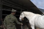 Antes de desempolvar sus cuadernos y lápices, los alumnos asistieron a una sesión teórica sobre hipología a cargo de Manuel J. Escobar, comandante jefe del Servicio Veterinario, que cuida, junto a su equipo, de la salud de los 172 caballos de la Guardia Real. Los estudiantes pudieron comprobar la variedad de capas -pigmentación en el pelaje del animal- y la amalgama de matices físicos y de carácter de los caballos. Pensaron que tienen a su disposición un universo de matices para pintar, pero también una exigencia a la hora de elegir qué tipos de caballos van a protagonizar sus cuadros.