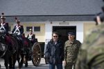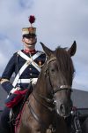 Un lancero, un coracero y artilleros flanqueando un tiro de una pieza de artillería tirado por ejemplares hispano-bretones pusieron la guinda a la visita. La vestimenta de gala y la quietud de los animales y los jinetes conformaron una combinación perfecta para la lección en vivo.