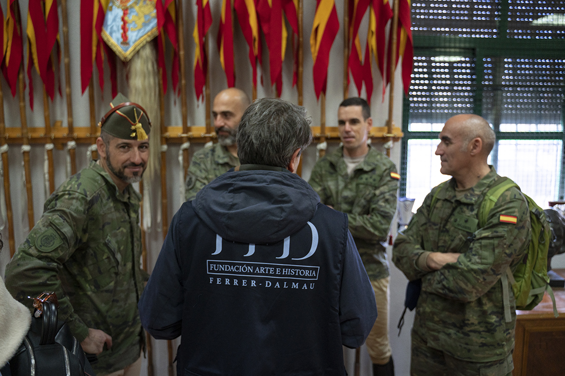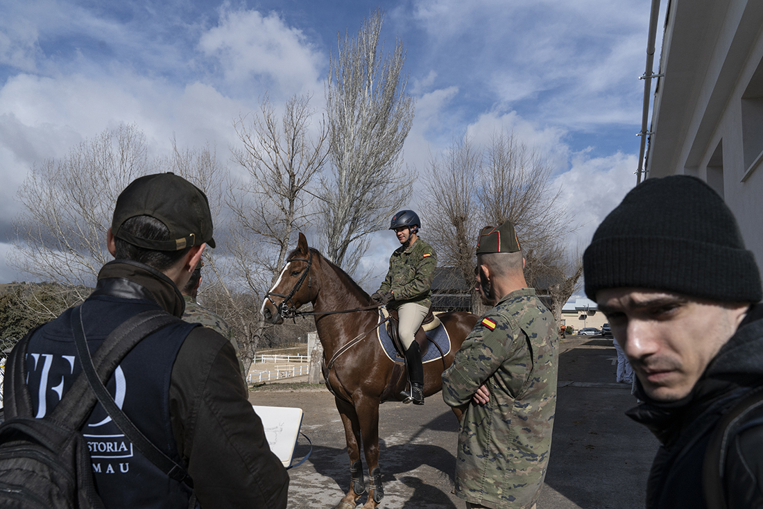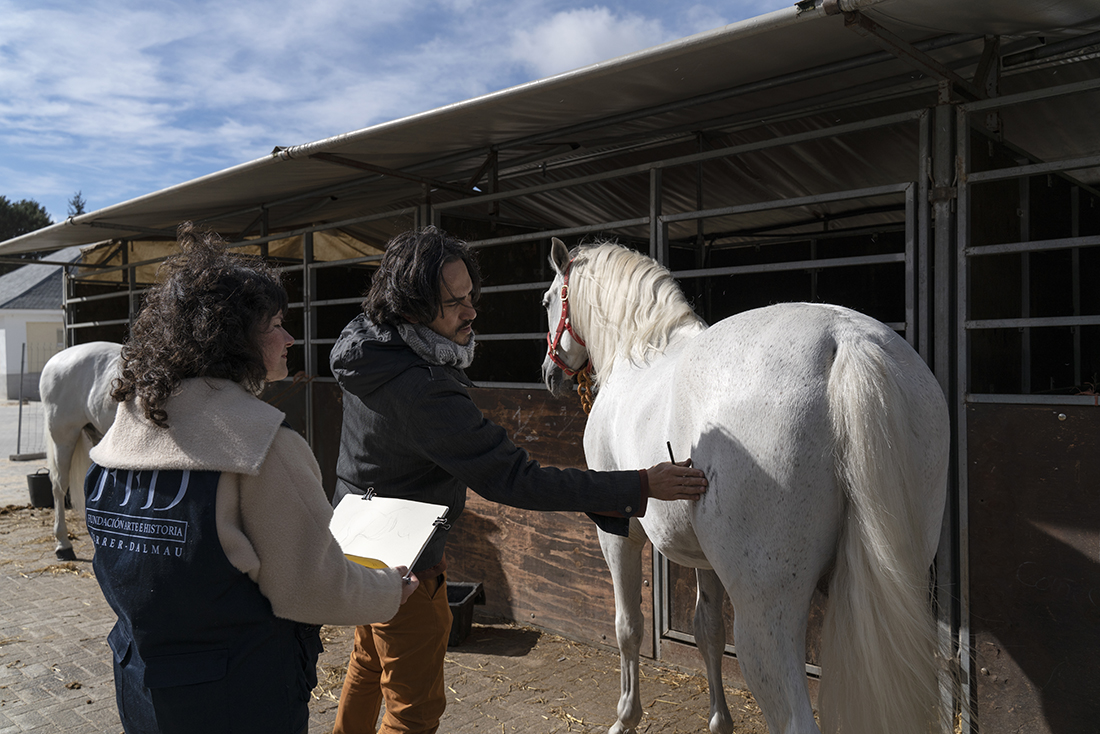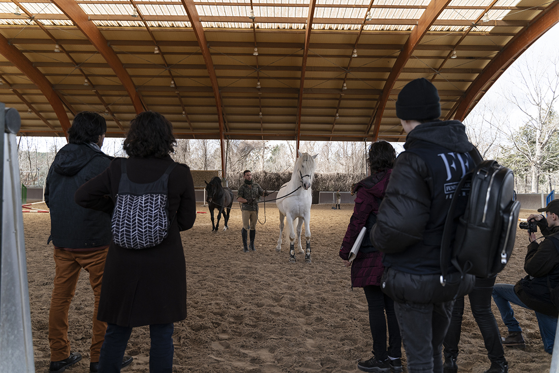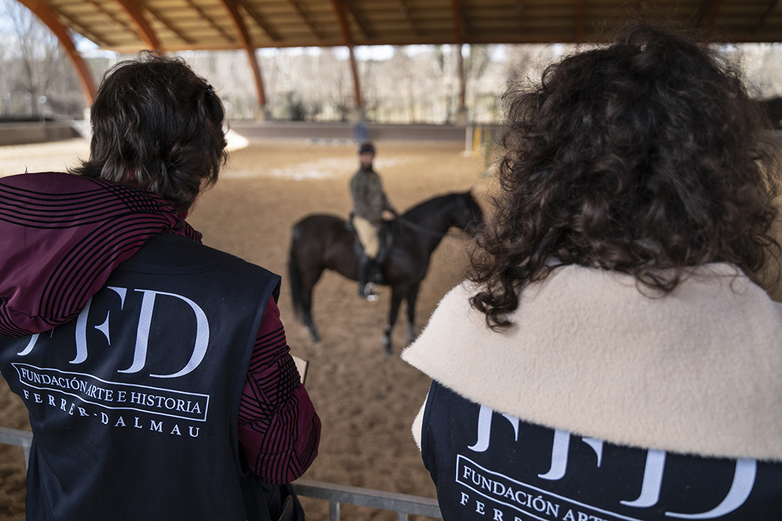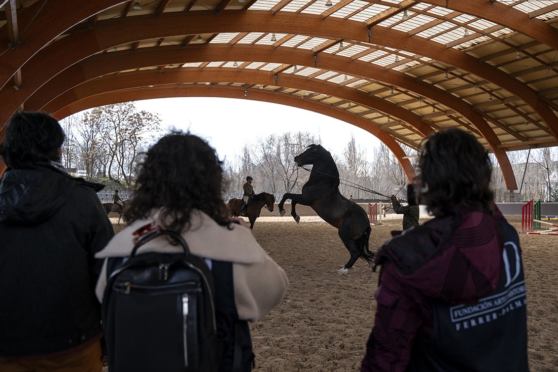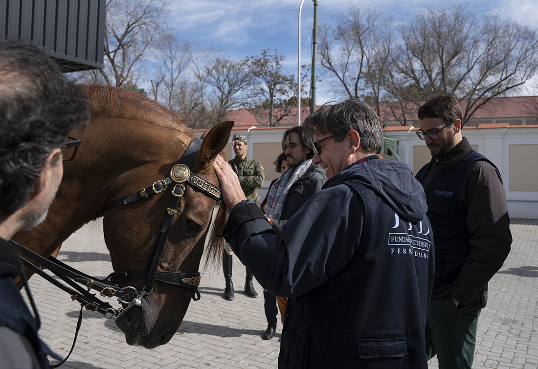 Acompañados de Augusto Ferrer-Dalmau; Laura Soto, directora académica del Máster en Pintura de Historia Ferrer-Dalmau de la Facultad de Comunicación y Artes de la Universidad Nebrija; diferentes mandos militares de la Guardia Real y miembros de la Fundación Ferrer-Dalmau, los estudiantes se detuvieron en las cuadras. No todo va a ser lances heroicos, en los establos también robaron algunas ideas para futuros cuadros.