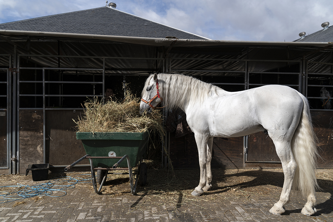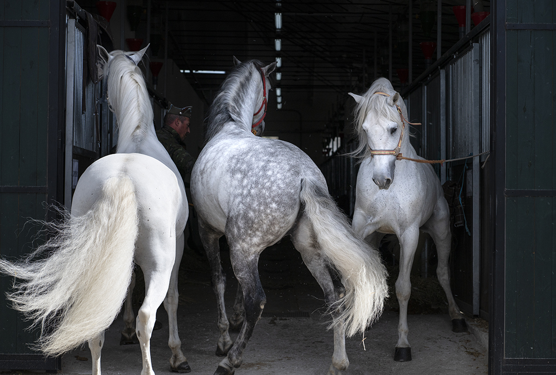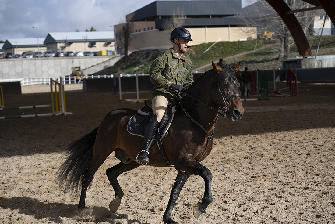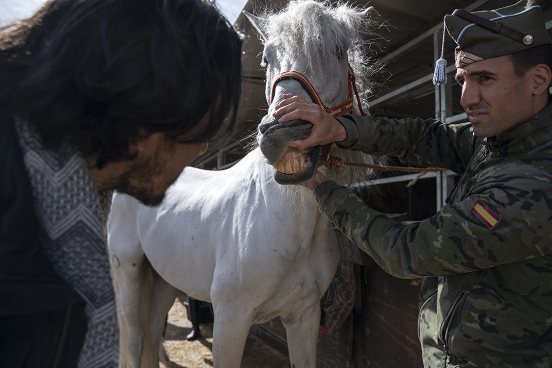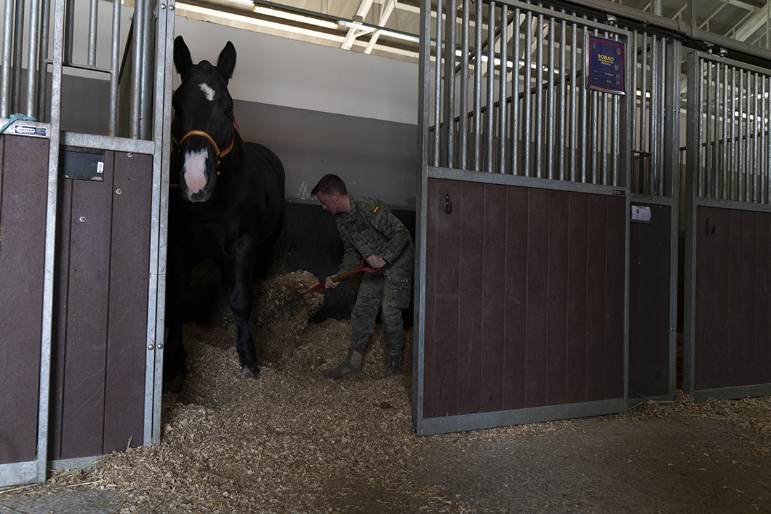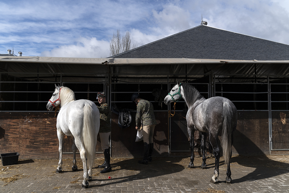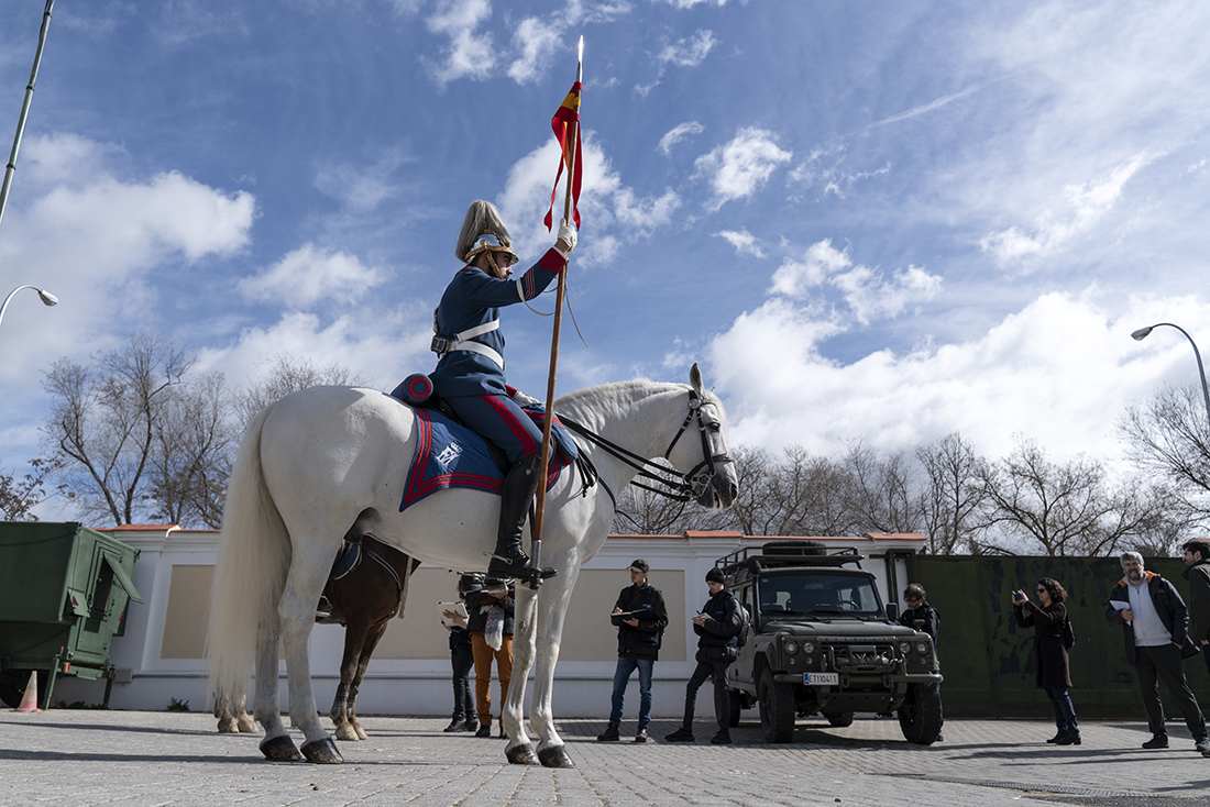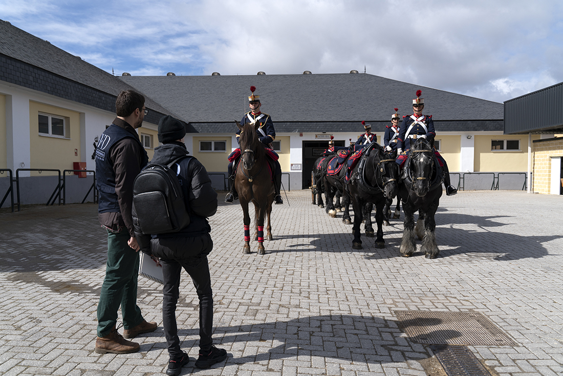 Acompañados de Augusto Ferrer-Dalmau; Laura Soto, directora académica del Máster en Pintura de Historia Ferrer-Dalmau de la Facultad de Comunicación y Artes de la Universidad Nebrija; diferentes mandos militares de la Guardia Real y miembros de la Fundación Ferrer-Dalmau, los estudiantes se detuvieron en las cuadras. No todo va a ser lances heroicos, en los establos también robaron algunas ideas para futuros cuadros.