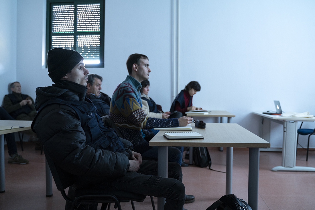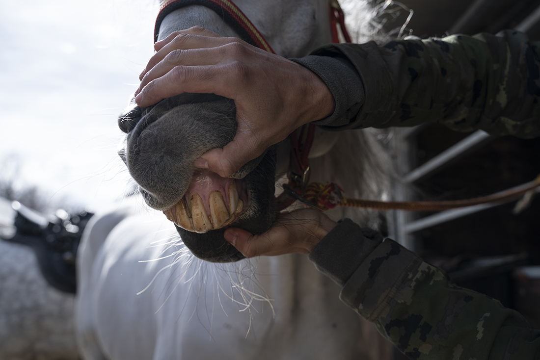 Antes de desempolvar sus cuadernos y lápices, los alumnos asistieron a una sesión teórica sobre hipología a cargo de Manuel J. Escobar, comandante jefe del Servicio Veterinario, que cuida, junto a su equipo, de la salud de los 172 caballos de la Guardia Real. Los estudiantes pudieron comprobar la variedad de capas -pigmentación en el pelaje del animal- y la amalgama de matices físicos y de carácter de los caballos. Pensaron que tienen a su disposición un universo de matices para pintar, pero también una exigencia a la hora de elegir qué tipos de caballos van a protagonizar sus cuadros.