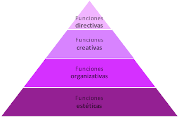 La distribución de las funciones mencionadas se puede reflejar en una pirámide con cuatro niveles:
