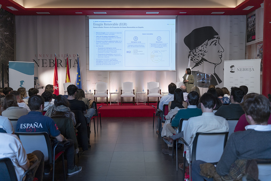 Los desafíos energéticos ante el cambio climático coparon las intervenciones de la primera jornada sobre sostenibilidad organizada por la Politécnica Nebrija. Representantes de Repsol, Iberdrola y Enagás, junto a Juan José Coble, director del Máster en Energías Renovables y Eficiencia Energética – ISM de la Universidad Nebrija, abordaron las estrategias y el estado actual del proceso de descarbonización y de la reducción de las emisiones de dióxido de carbono. Carlos Gumiel, director del Grado en Ingeniería en Tecnologías Industriales, definió la declaración de intenciones de la sesión: “Ante esta situación ha llegado el momento de ocuparse más que de preocuparse”.