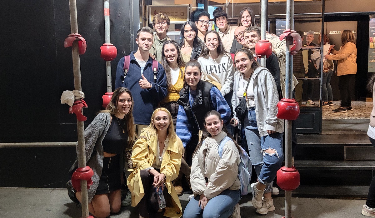 Los alumnos de 4º del grado en Artes Escénicas, acompañados de varios profesores del grado, acudieron a la representación de la obra Burundanga en el teatro Fígaro de Madrid como actividad programada de la asignatura de Proyectos de Interpretación y Creación Escénica que imparte la profesora Luna Paredes.