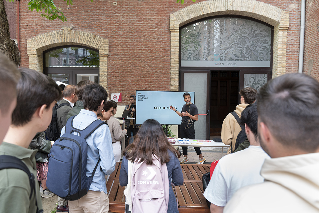 En el transcurso de la primera jornada de empleo, el patio del Campus de Madrid-Princesa albergó un taller de design thinking a cargo de Sergio Gil. El design thinking es “un método muy útil que aplica el sentido común y el orden” a través de soluciones imaginativas e innovadoras para resolver diferentes problemas. En su opinión, esta herramienta equivale a “una forma de pensar” que, mediante “un proceso ágil”, termina por conocer a las personas y sus necesidades reales y da una solución creativa a sus intereses. Los universitarios se mostraron entusiasmados con esta clase práctica que les obligó a coger papel y bolígrafo para plasmar sus ideas.