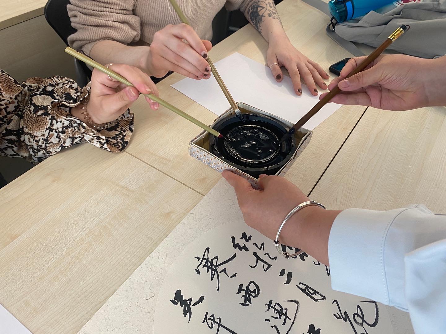 De su mano, y con la ayuda de las profesoras de chino, Li Ning y Ying Liu, los participantes tomaron contacto con el arte de la caligrafía china y pudieron practicar sus habilidades caligráficas.