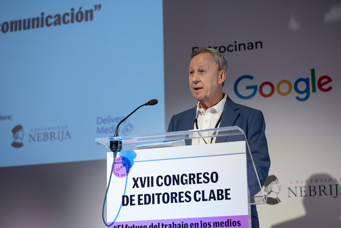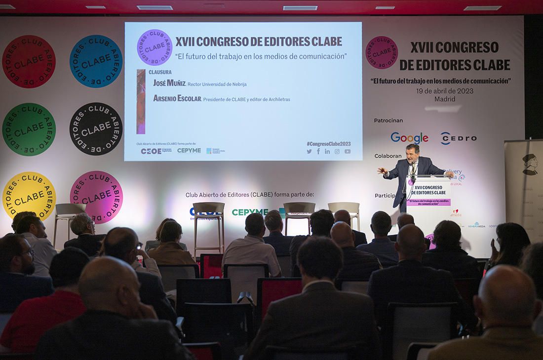 CLABE (Club Abierto de Editores), la asociación más importante del sector de medios de comunicación en España con 182 grupos empresariales asociados y cerca de 1000 cabeceras, celebró en el Campus de Madrid-Princesa de la Universidad Nebrija su XVI Congreso de Editores y Periodistas bajo el lema El futuro del trabajo en los medios de comunicación. Los ponentes, expertos en la materia, debatieron desde el presente sobre la irrupción de la inteligencia artificial en el modelo de negocio y en el oficio desde una posición mayoritariamente optimista que no dejó de lado el talento humano y la esencia de un periodismo al servicio de la ciudadanía. Eso sí, varios fututos son posibles. La crónica está en el primer párrafo.