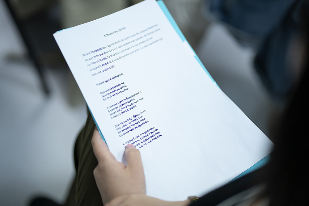 Como todos los años, el Centro de Estudios Hispánicos (CEHI) celebró el Día del Libro en la Universidad Nebrija con un acto en el que alumnos y alumnas de diferentes nacionalidades leyeron textos o poemas breves en sus lenguas maternas.