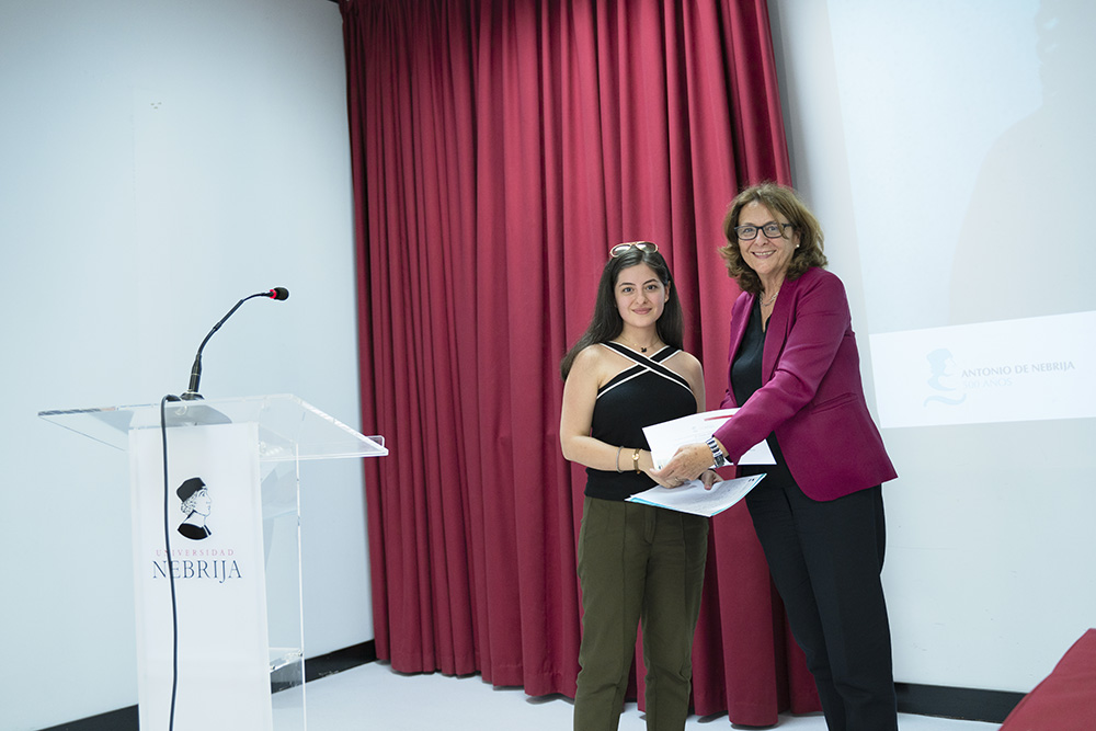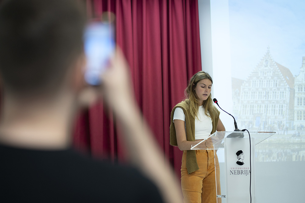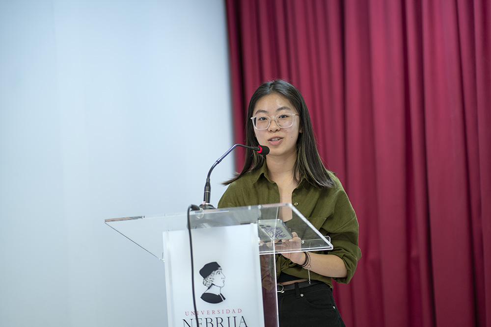 Durante el acto, los asistentes pudieron escuchar fragmentos literarios en 19 idiomas diferentes. Al concluir las lecturas, Melisa Teves anunció la entrega de los premios del XIV Certamen Plurilingüe de Relatos Breves organizado por el Instituto Nebrija de Lenguas Modernas (ILM). “Este año hay cuatro lenguas representadas: inglés, francés, alemán y español para extranjeros. Desde el Instituto de Lenguas Modernas nos gustaría felicitar a los premiados y a todos los alumnos y alumni de la Universidad que han participado en este certamen”, recalcó.