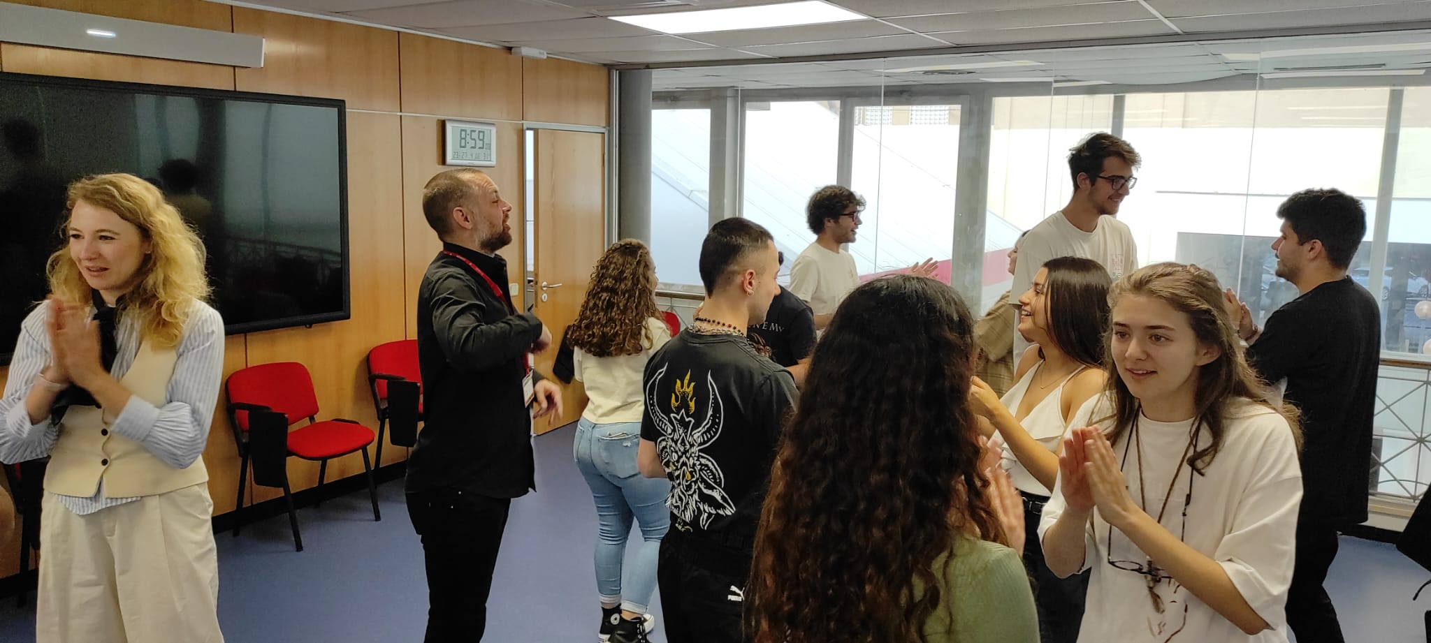 El taller se convirtió en una actividad de cuatro sesiones para toda la comunidad Nebrija. Los participantes pudieron saborear de forma directa lo divertido y accesible que es este arte del aquí y el ahora. Impartió Luc Ciotkowski, profesor de inglés del Instituto de Lenguas Modernas y formado en improvisación teatral en la Escuela Jamming Teatro de Madrid, con un enfoque en la Improvisación Aplicada.